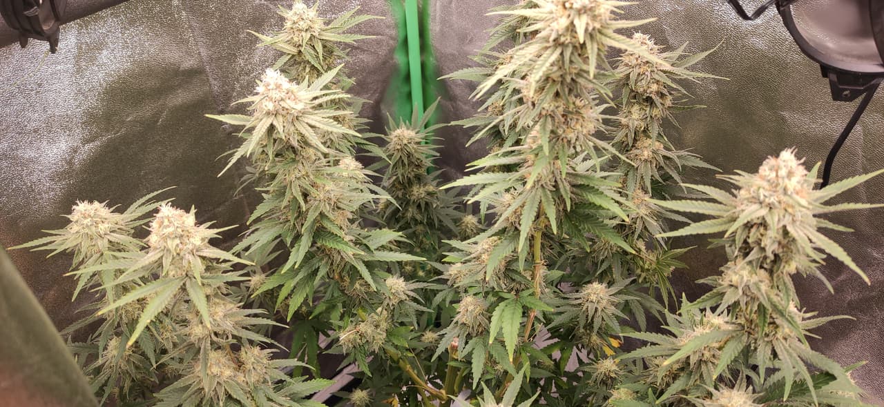 Bedingungen: Temperaturen Licht aus bis zu 19-20° aber meist so gegen 22-23° - bei vollem Betrieb dass sind ca. 2x 90 Watt durch die 2x SF 1000 Lampen liegt die Temperatur bei 24° bis 28-29°. Alles in allem, gestüzt durch die 3 kleinen Lüfter u. die direkte Luftzufuhr vom Fenster gute klimatische Bedingungen wie ich finde. Aber klar, es geht immer noch besser.