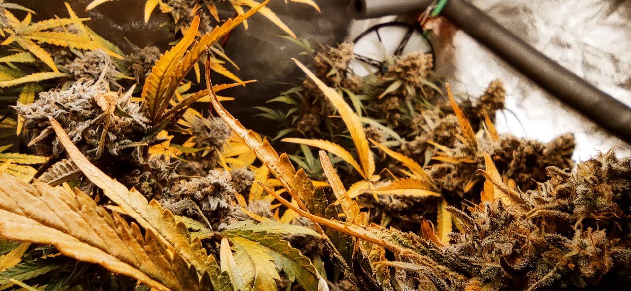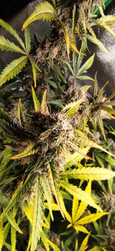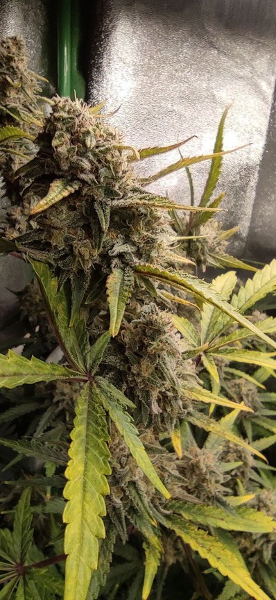 trichome check bei 40-55%. gut sichtbare mängel. die größte der 2 verbliebenen pflanzen, sehr muffig, es "stinkt" regelrecht. :) vom generellen wachstum her überlege ich in zukunft ob ich die stofftopfgröße bebehalte oder 20l töpfe nehme. ist auch abhängig von der vegi-zeit nebenan.