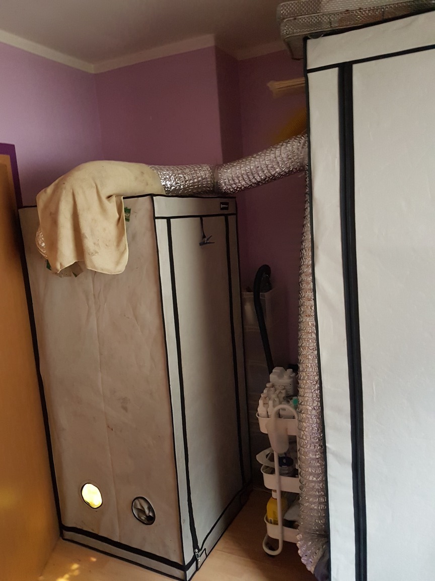 Hey Leute mein ersten Grow ist run, den ich in ein 60×60x160 zelt absolviert habe und er lief echt gut. Doch da habe ich schon gemerkt das der Platz knapp ist nun hab ich mir ein 80×80x180 Zelt gekauft und holy moly ist der Unterschied krass. Soweit so gut nun ist meine erste Pflanze in 1 Woche Ready zum Ernten die anderen 2 brauchen dann noch 2 Monate. Ich versuche 2 pflanzen alle 2 Monate fertig zu bekommen. Jetzt meine Idee 2 zelte miteinander verbinden eins zum Trocknen eins zum growen. Die vegi und Wachstums Phase wird im Wohnzimmer gemacht unter einer billigen China Lampe auf den Schrank was sich als echt gut erweist.