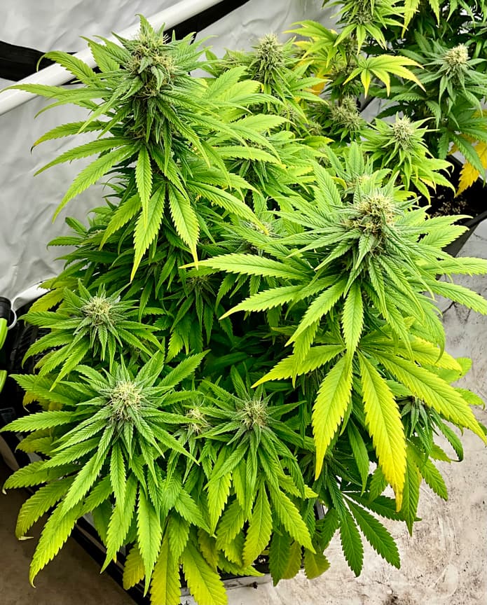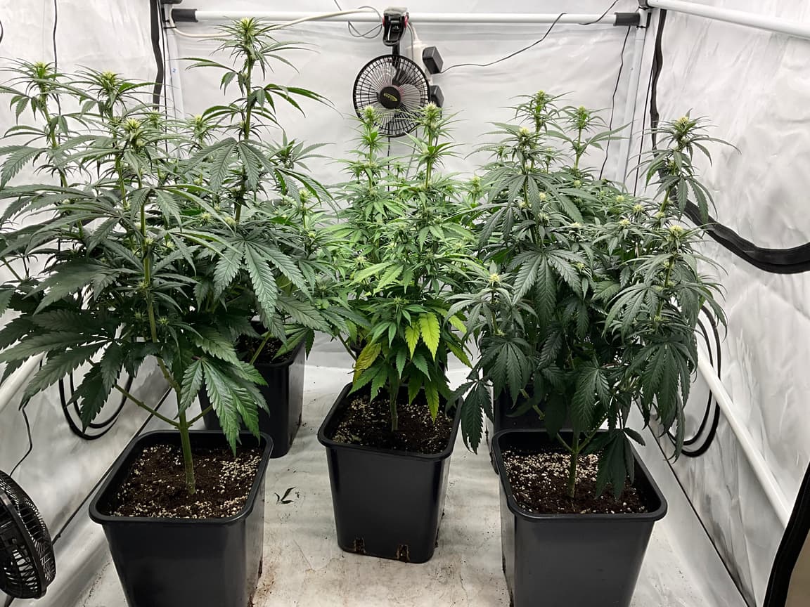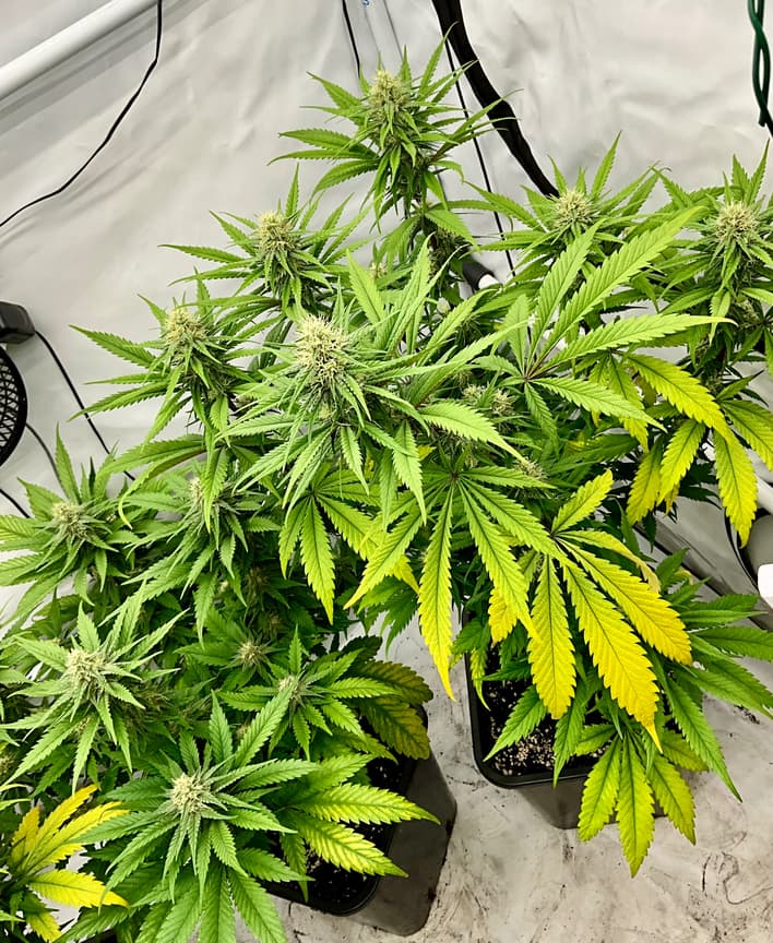 In der Phase, als meine Mädels noch sehr jung und recht klein waren, habe ich bei der Lichteinstellung viel mit PPFD gearbeitet, also etwa 300-350. Je größer und kräftiger sie dann wurden, habe ich dann einfach, zunächst bei gleichbleibender Wattleistung (250W), mittels Höhenverstellung der LED-Lampe, die Intensität gesteigert. Jetzt, zum Ende der zweiten Blütewoche, fahre ich die volle Leistung von 720 Watt und einem PPFD-Wert zwischen 1400 - 1650. Bisher scheinen meine Pflanzen es gut zu vertragen, zumindest nach meiner eigenen, anfängerlastigen, subjektiven Meinung.