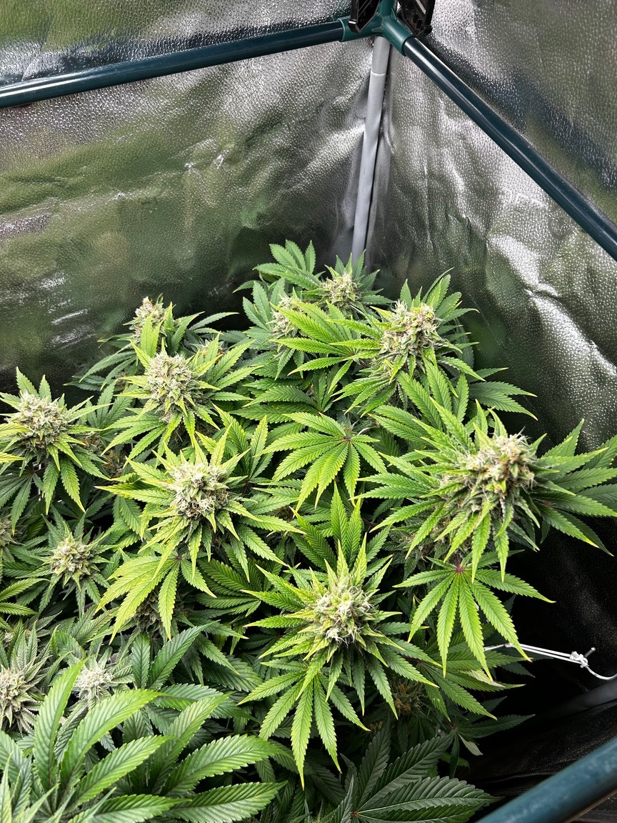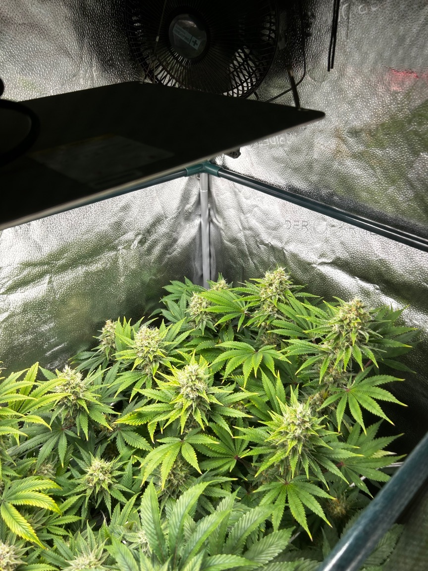 Ende Woche 3(+2Stretch) sieht das ganze doch schon recht vielversprechend aus. Heute wurde nix gemacht außer kurz Luke auf (fĂŒr Fotos, Reißverschluss wurde nicht benutzt!😏) und wieder zu. Reicht auch völlig, der Gorilla Girl geht es gut. Aus Faulheit wurde hier ja zu „Testzwecken“ nicht defoliert, es wurden wirklich keine BlĂ€tter abgeschnitten! Das Thema rLf ist kein Problem, die Umluft (quergelegter Turmventilator) reicht aus um das alles durchzupusten. Der olle GHP Clipventilator blĂ€st nur auf die LED, und daß auch nur wenn diese leuchtet.