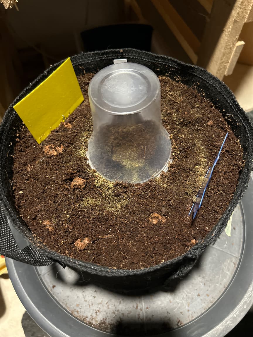 Dank eurer Unkenrufe (🤣) wurde jetzt mal das letzte RQS Critical-Korn direkt in 10 Liter normales Kokos geworfen. Einzig drainage unten und Pilze oben. Mehr kam nicht dazu!