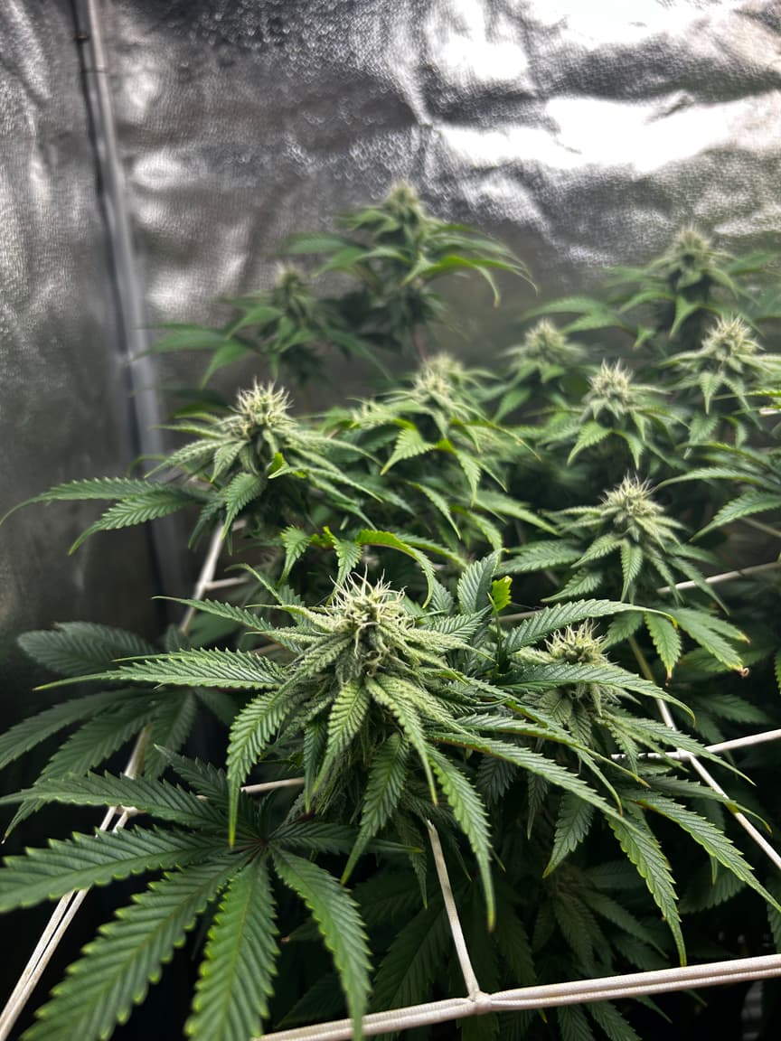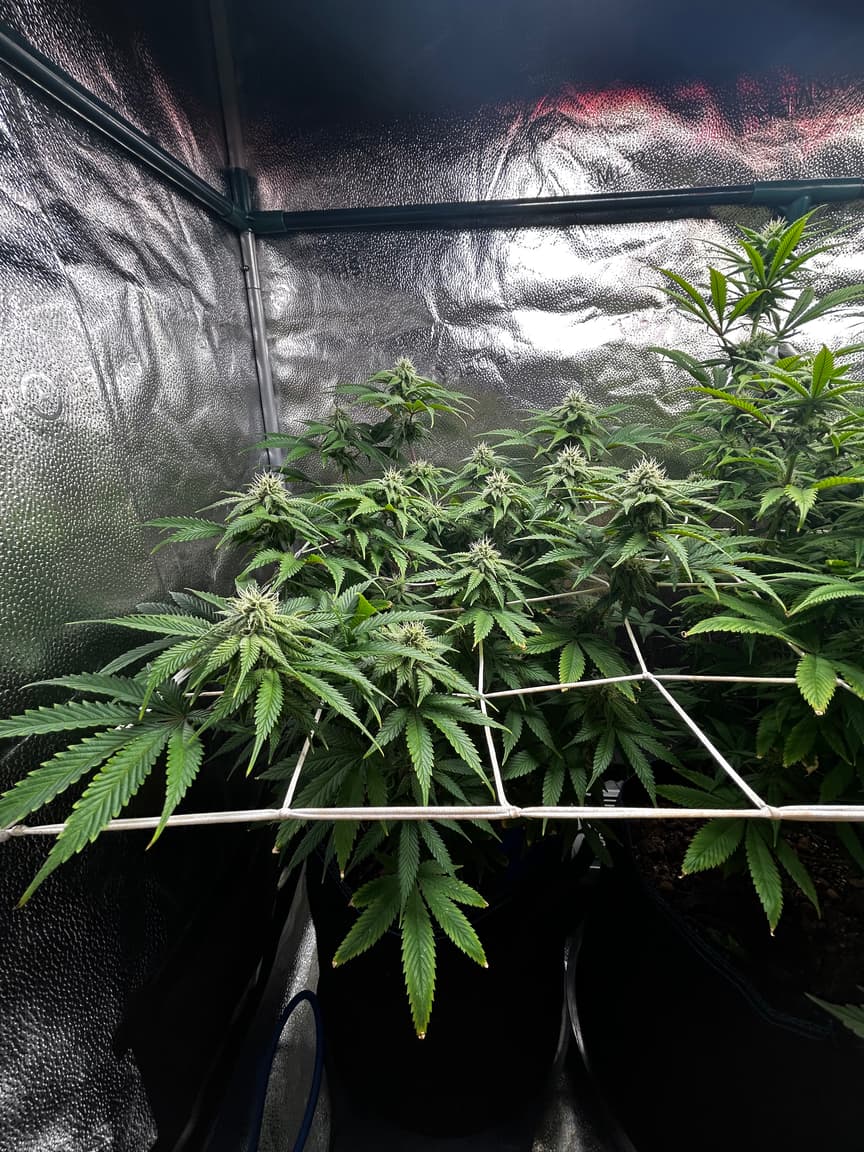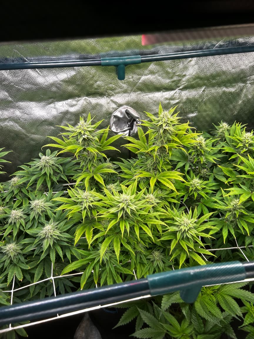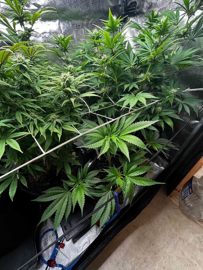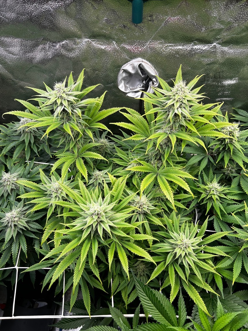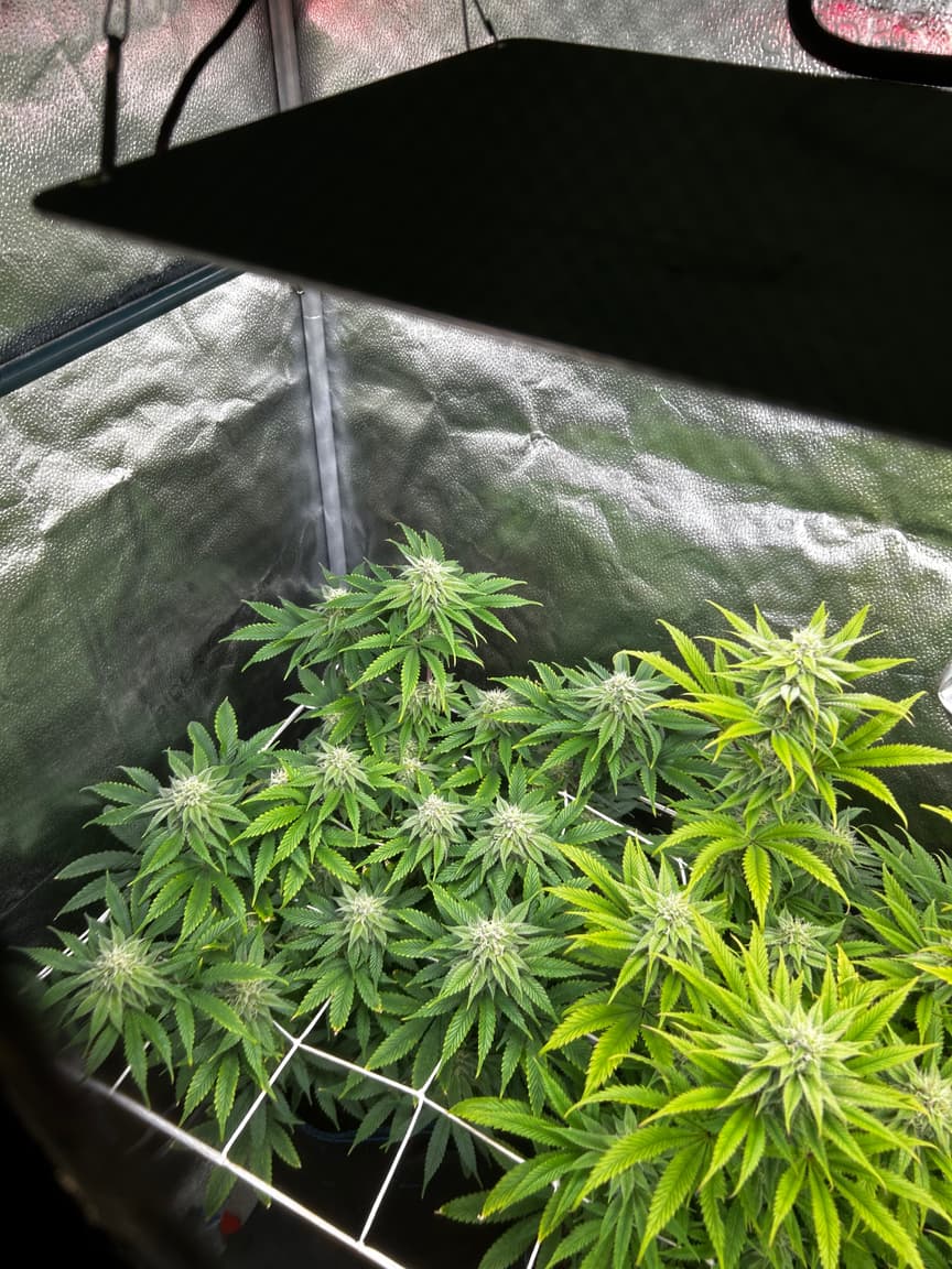 Sieht gut aus, obwohl die rLf zeitweise schon unter 40% gesunken war. Ich werde wohl noch eine zsu an die „Abluft“ (pustet einfach nur in den Raum, der lufteinlass des großen Zeltes saugt dann davon ab) machen und auf 15on/15off (kleinster Intervall) stellen.