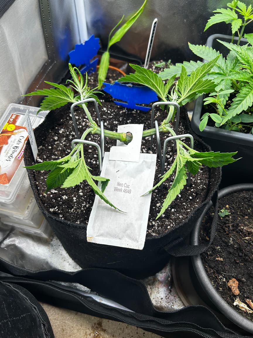 Der Clon hat fälschlicherweise ebenfalls von dem Blühdünger bekommen, eigentlich ist da zu wenig Micro (da ist das Cal/mag wohl drin) in der Mischung. Ich hoffe es ist genug von allem was aktuell gebraucht wird ausreichend in der Erde.
