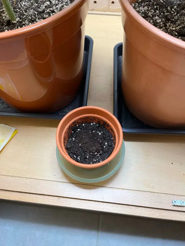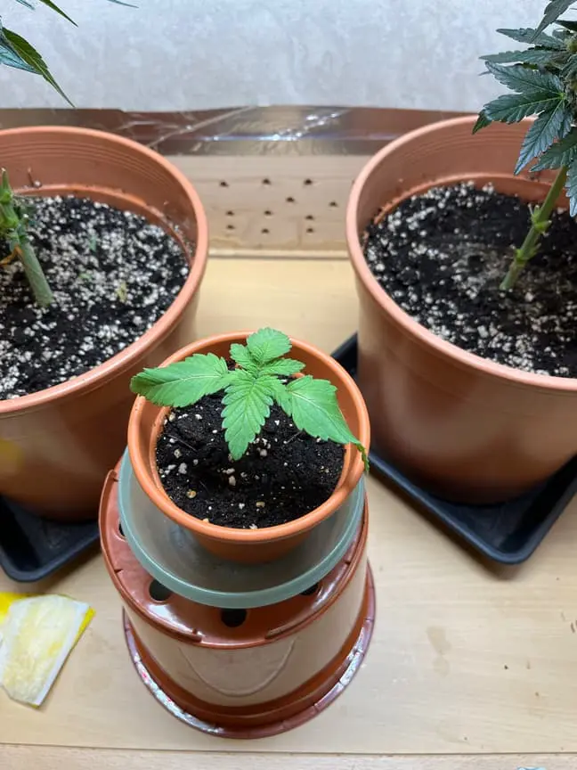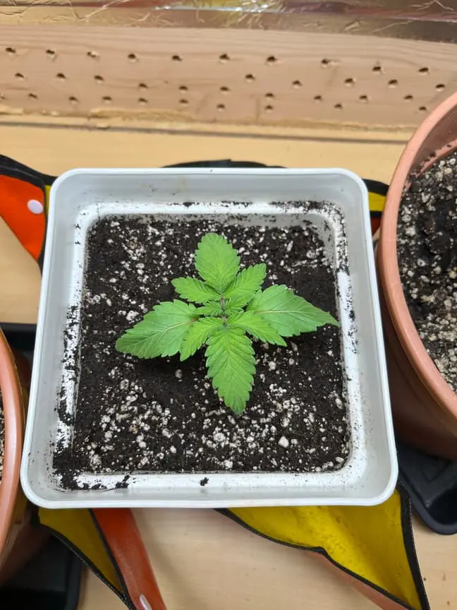 Nachdem das ne mickrige Ernte wird, habe ich noch eine Orange bud von Nirvana keimen lassen und heute in dem Topf mit Light mix gelegt.