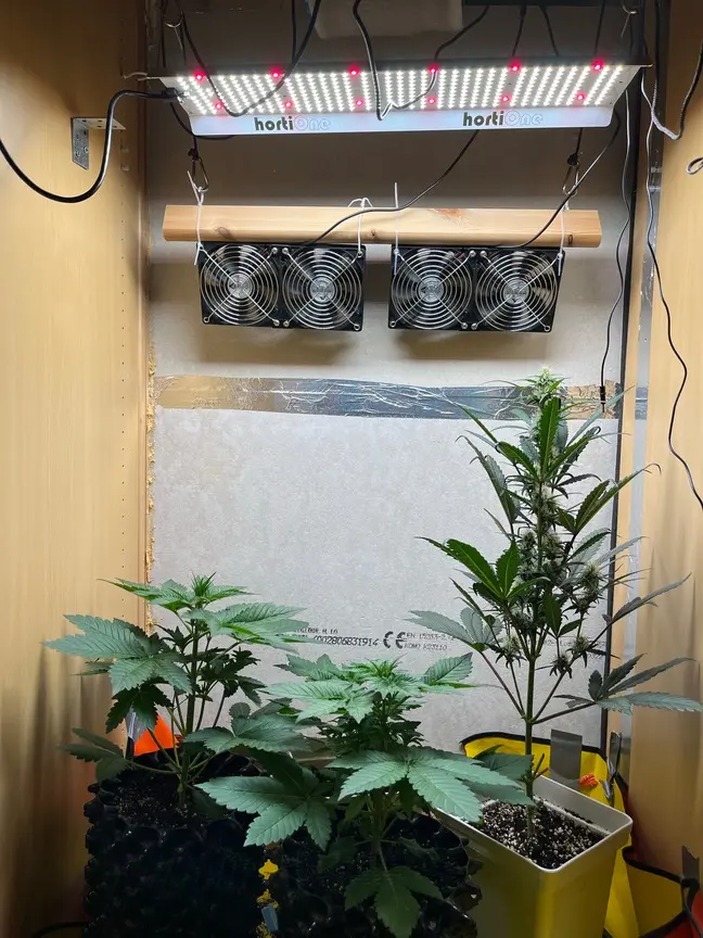 HuHu, mal n Update von mir, soweit alles gut, die PSI hat n ph Problem oder cal/mag Ich hab jetzt erstmal die Lampe höher gehängt, sind dann immer noch 800ppfd, mal sehen was passiert.