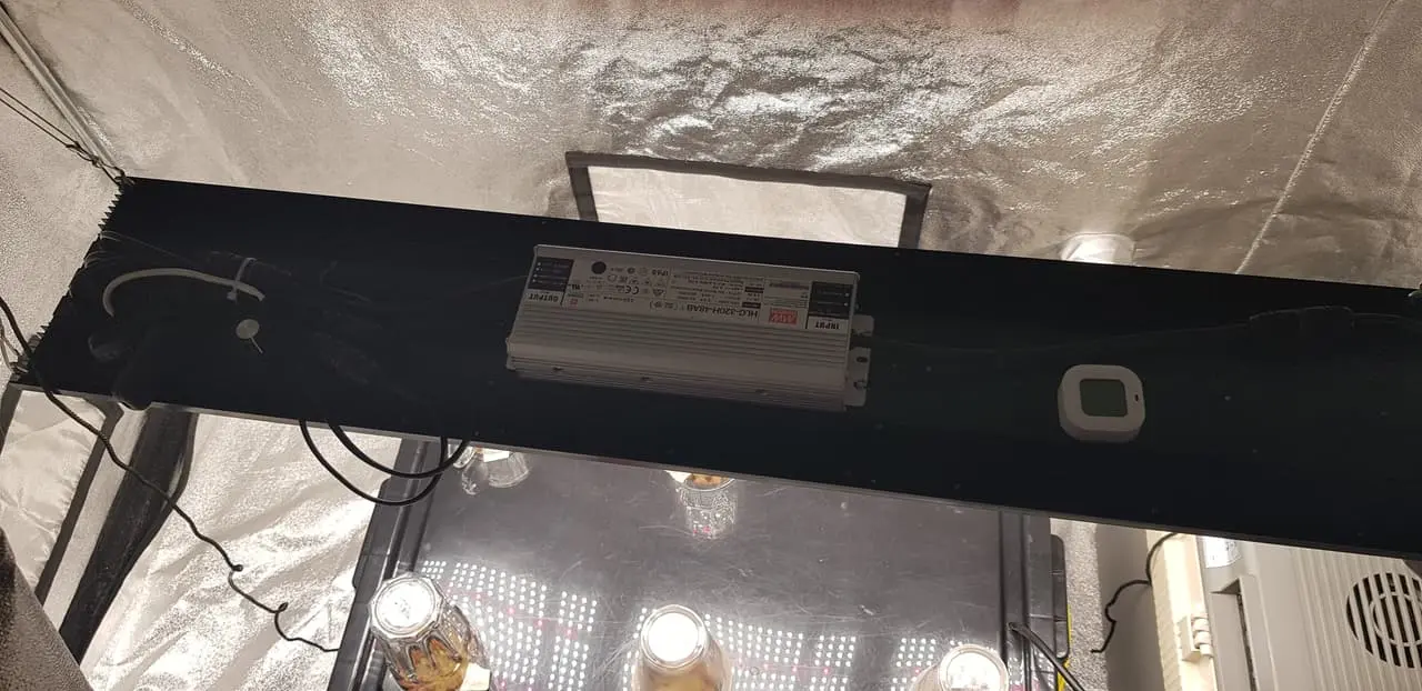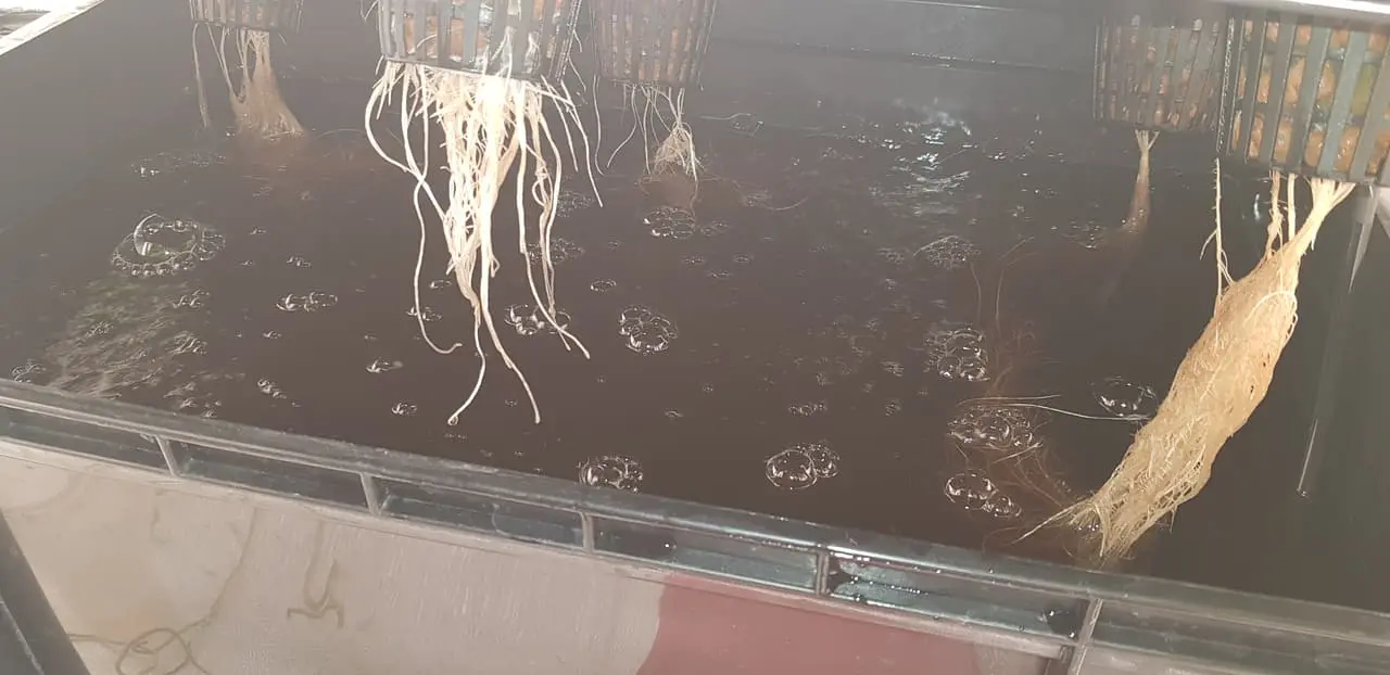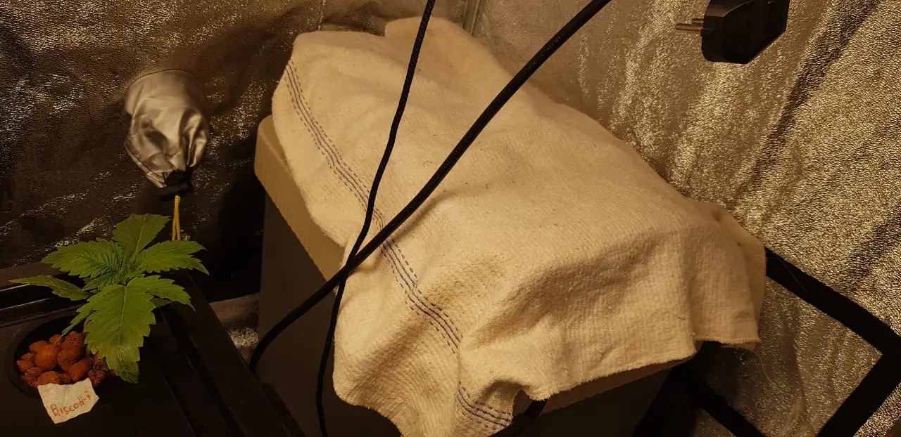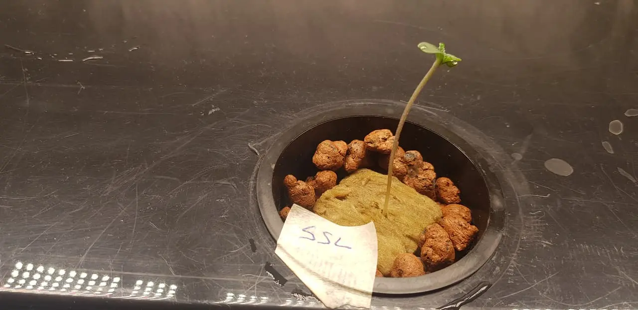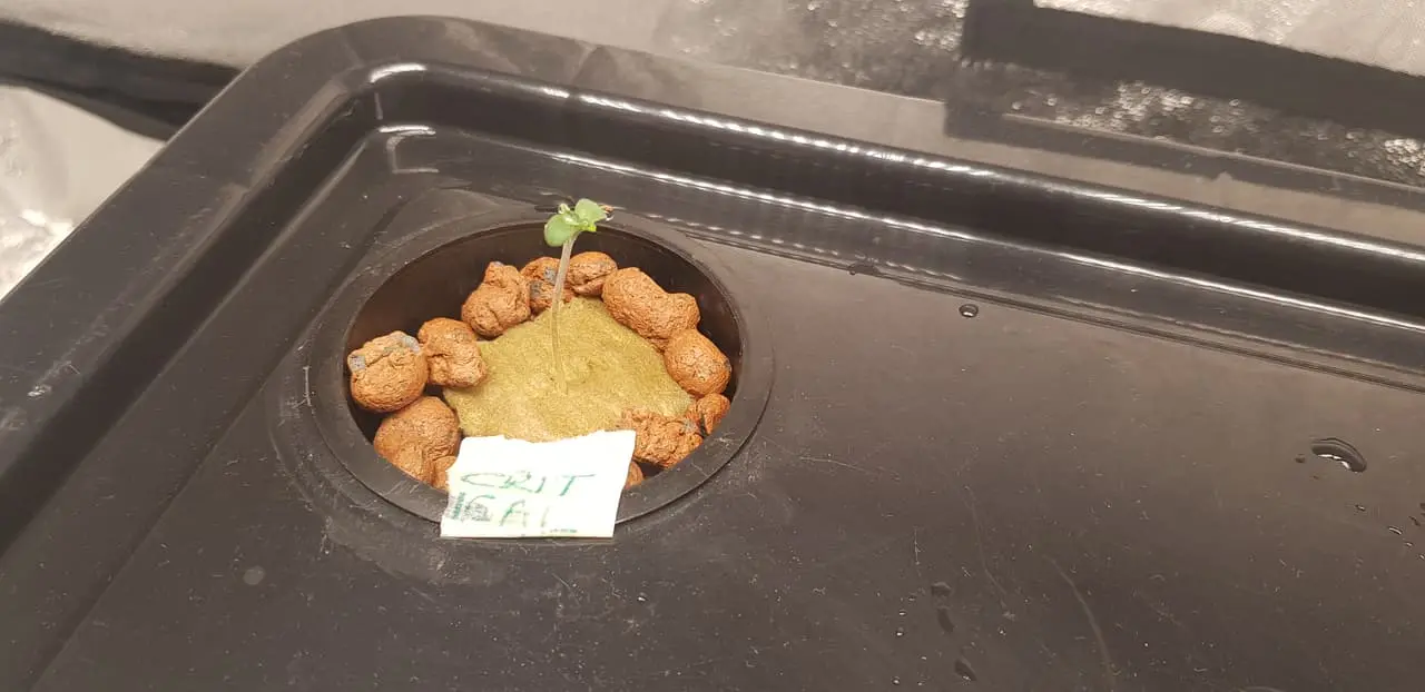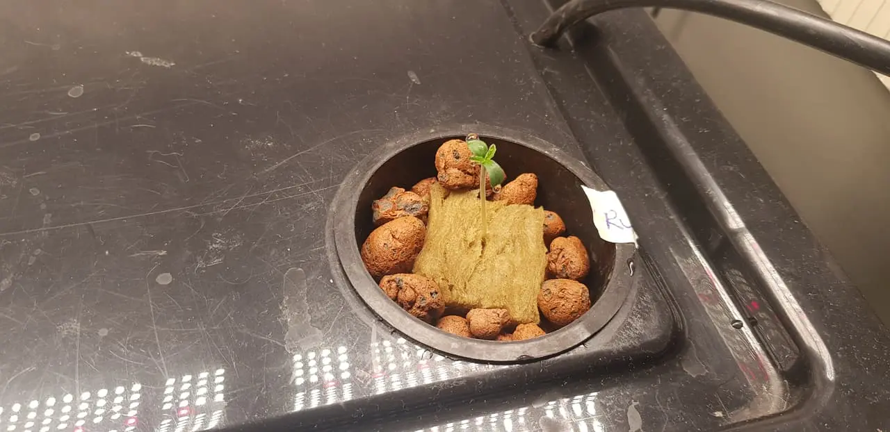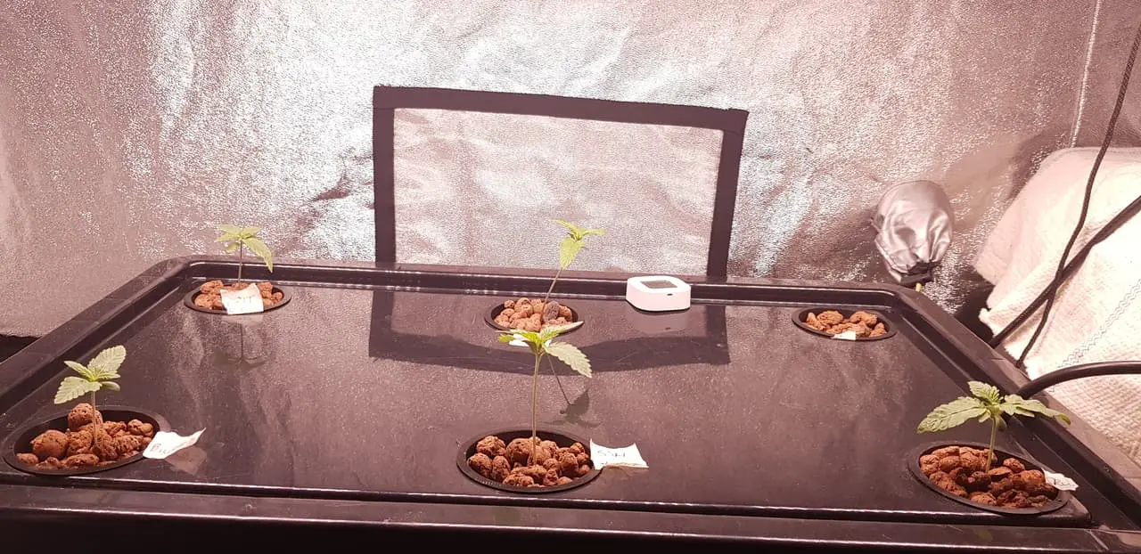 Die Steinwollwürfel wurden in 5,4 PH-wertiges Wasser "eingeweicht", in mit Löffelspitze TNC Mycorr Hydro und Green House Feeding Bio Enhancer angereicherter Lösung, in welchem ich ich 100ml einen seit 6 Tagen mit T.A. Silicate zubereitete "Lösung" hinzugegeben habe. Wasser ist 50/50 RO/LW. EC: 0,550mS.