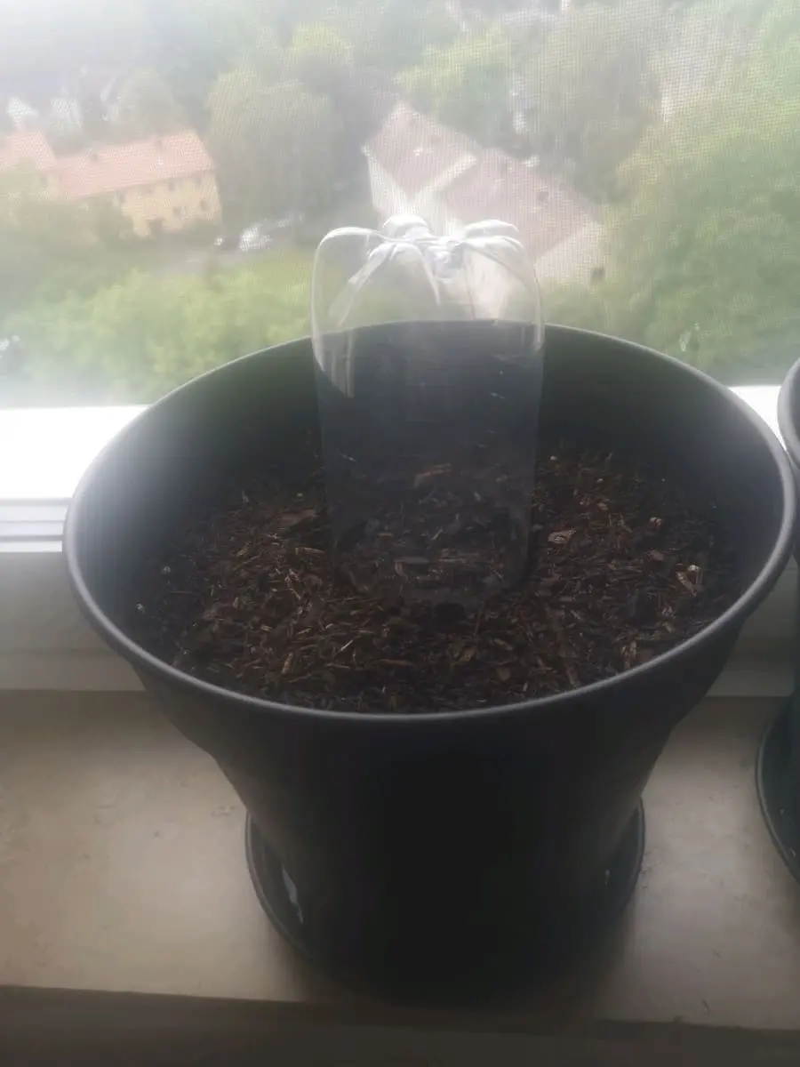 Gekeimt habe ich in einer abgedeckten Tasse voll abgekochtem und abgekühltem Wasser, danach gings direkt in den Topf. Wobei ich eine Mulde aus Anzucht & Kräutererde gebildet habe, damit die kleinen nicht gleich in die stark vorgedüngte Blumenerde kommen. Anzuchterde habe ich auch noch Übrig, für zukünftige Grows, würde sagen da reichen 4L. Darauf eine abgeschnittene PET-Flaschenhälfte (50ct a 2 Flaschen) um ein Gewächshaus zu simulieren und die Feuchtigkeit zu erreichen und vor Temperaturschwankungen zu schützen.![]()