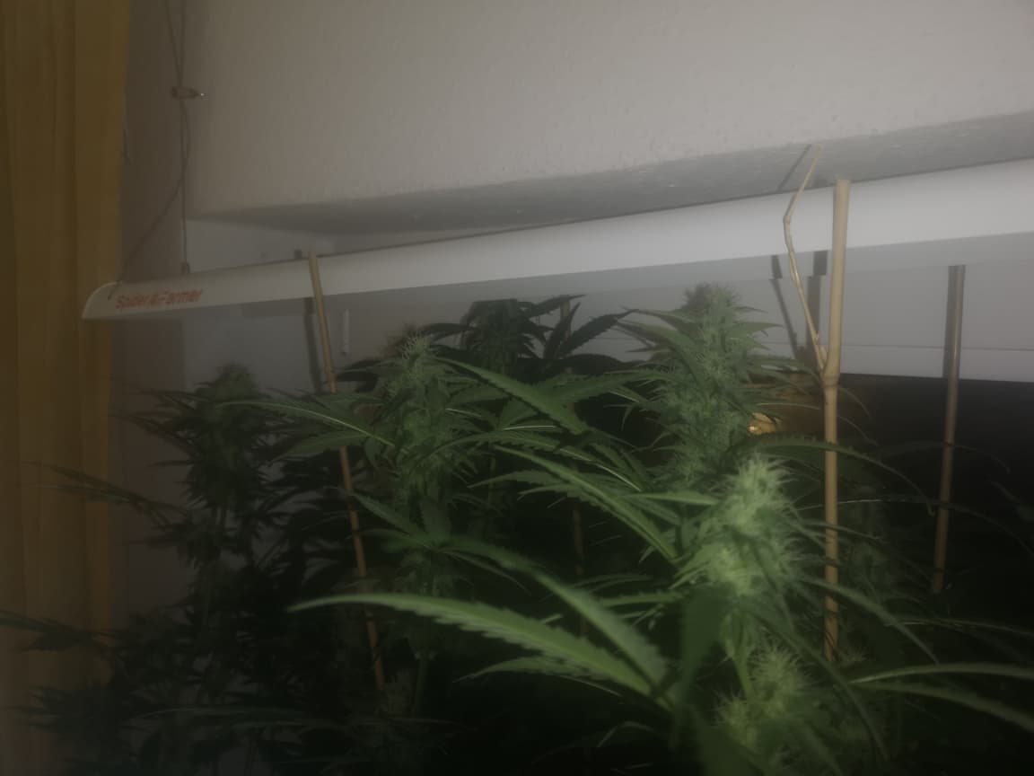Der Rest bis zur Blütephase ist gießen und abwarten, auch der Ventilator kam erst mit der Blüte zum Einsatz. Das Growlight hab ich so eingestellt, dass es mich nicht stört also 7uhr bis 22uhr (manchmal auch erst ab 10uhr wenn ich ausschlafen wollte). Ich bin Student und habe 14qm, muss also auch hier schlafen können. Alles nicht perfekt, aber wer ist das schon