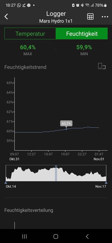 Hab derzeit irgendwie, ganz anders als sonst, eine dermaßen niedrigen RLF das ist für Blüte ok, aber schon zu lange so. Obwohl die Abluft kaum an ist. Komisch