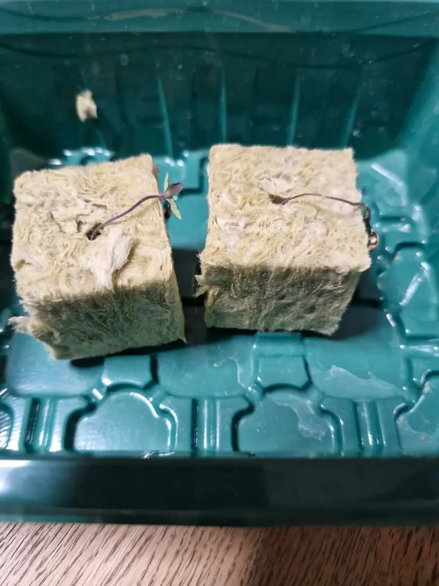 Also vor 3 Tagen schonmal den Samen ins Wasser, dann Steinwolle und heute sieht es so aus: