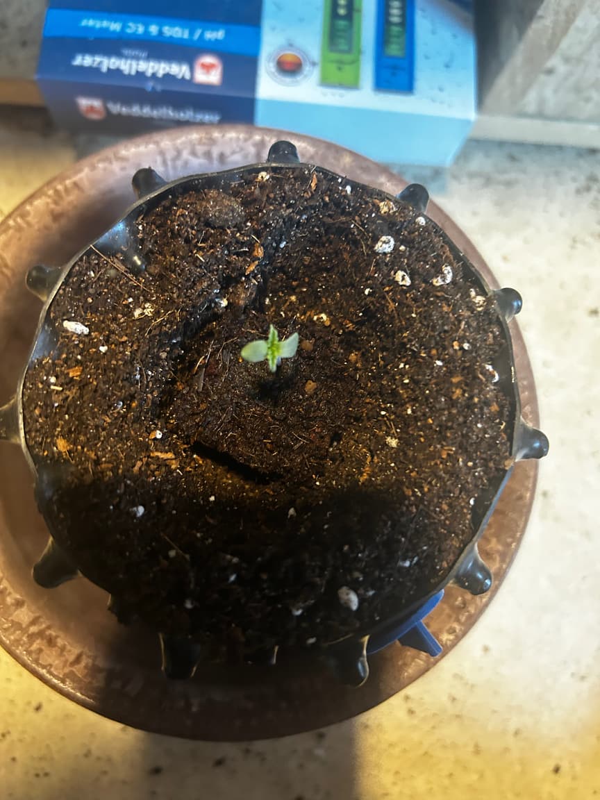 Der zweite Samen ist direkt in ein eazyplug gewandert. (Erprobt und sonst Standard, Samen ist falschrum aufgegangen, Wurzel nach oben gewachsen, doof)