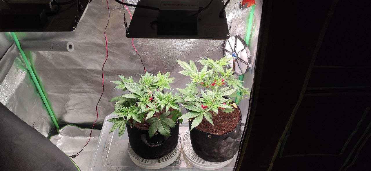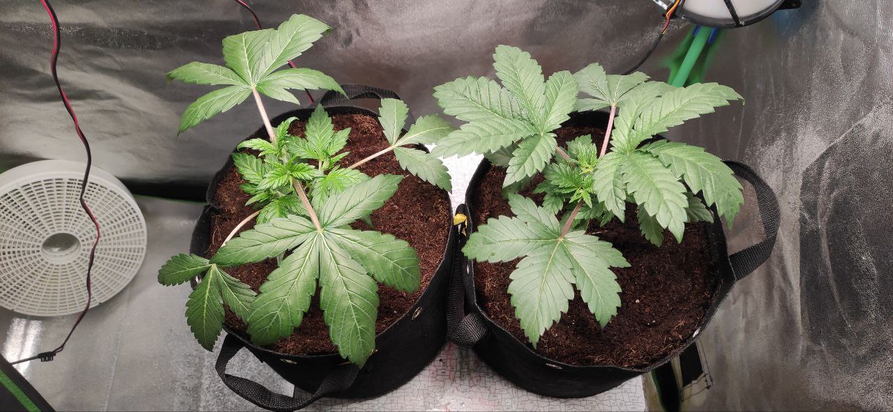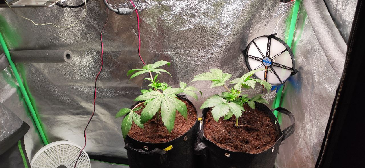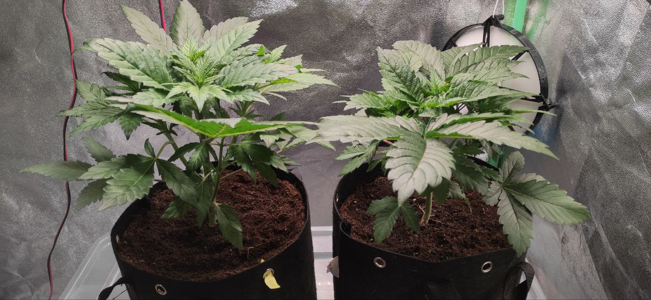 Update: Heute Abend wird umgetopft, dann gehts für die 2 in die 11 Liter Stofftöpe. So langsam hab ich für Hesi einen guten Daumen, wie ich finde. Sie sehen super Vital aus! Mal schauen wie die Umstellung verdaut wird. Erstmal 1x 100Watt danach schalte ich die zweite dazu, erstmal auch nur auf 60-70 Watt, nicht das die noch Sonnenbrand bekommen (scherz, aber meisst läuft die SF1000 bei 80-85Watt da die LEDs da am efffizientesten arbeiten.