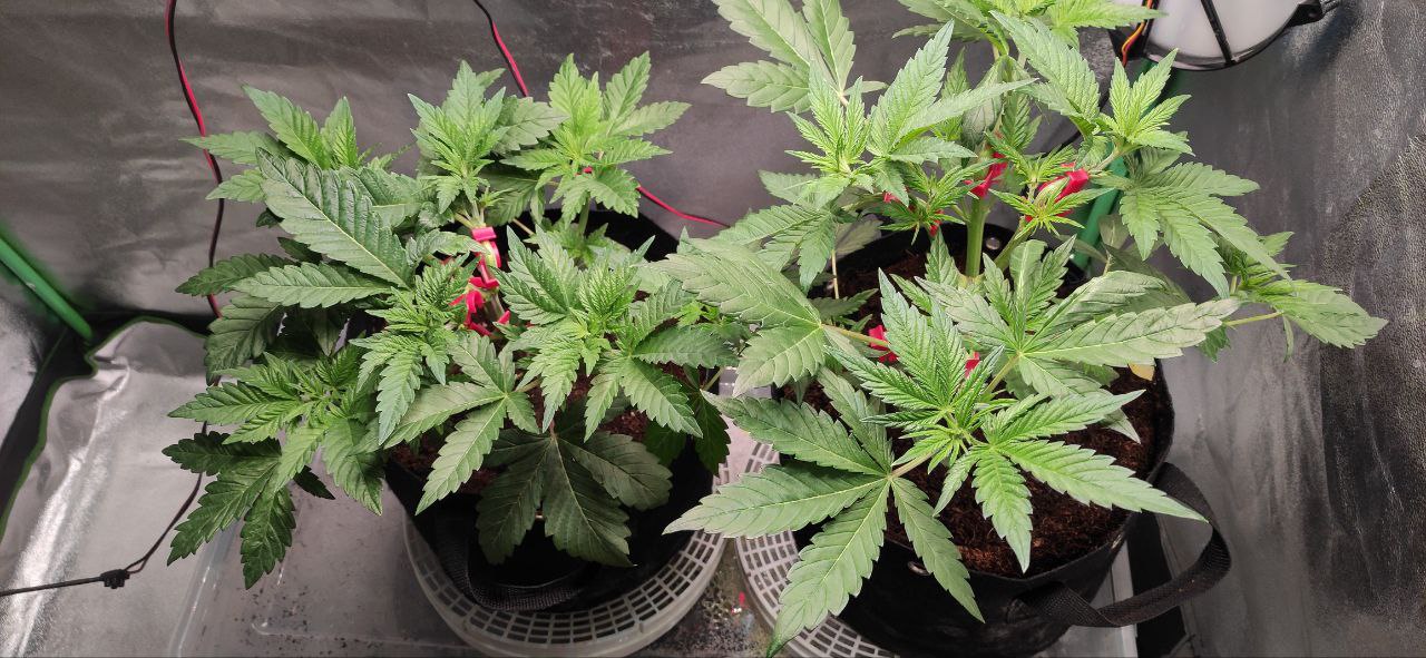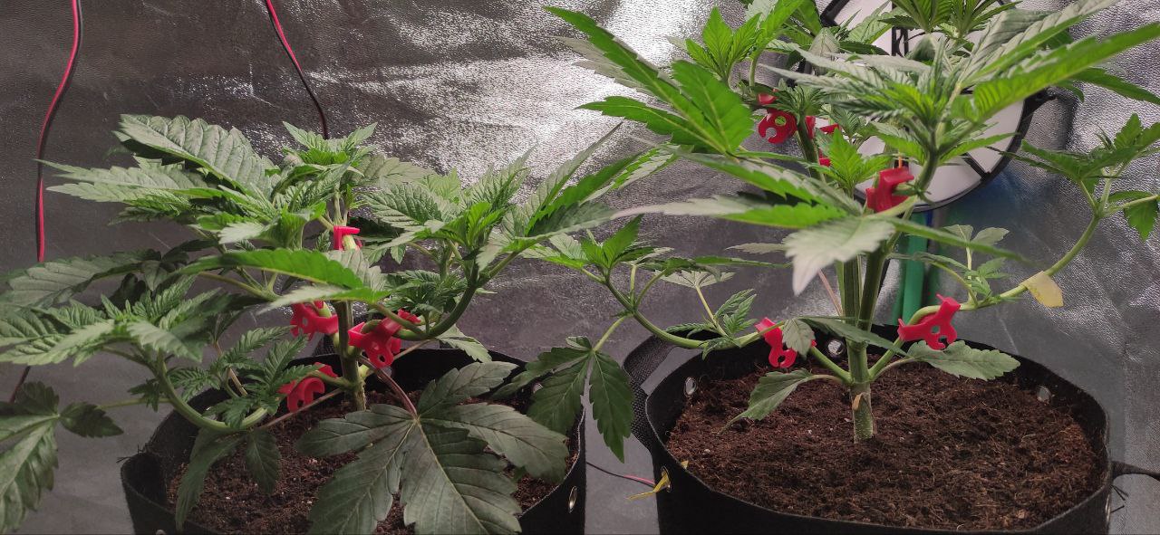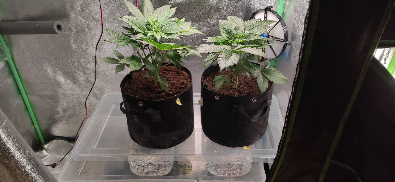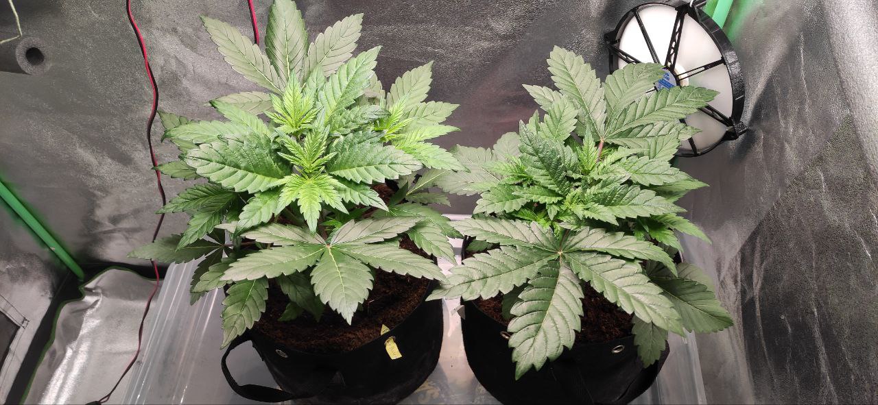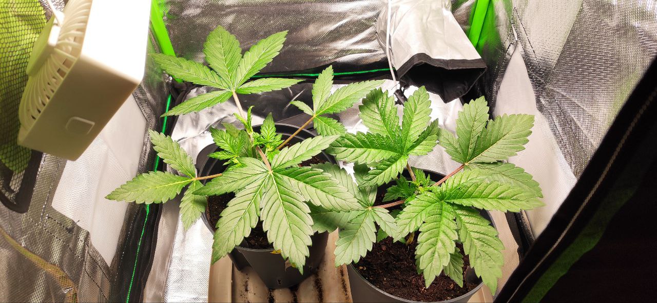 Update: Heute Abend wird umgetopft, dann gehts für die 2 in die 11 Liter Stofftöpe. So langsam hab ich für Hesi einen guten Daumen, wie ich finde. Sie sehen super Vital aus! Mal schauen wie die Umstellung verdaut wird. Erstmal 1x 100Watt danach schalte ich die zweite dazu, erstmal auch nur auf 60-70 Watt, nicht das die noch Sonnenbrand bekommen (scherz, aber meisst läuft die SF1000 bei 80-85Watt da die LEDs da am efffizientesten arbeiten.