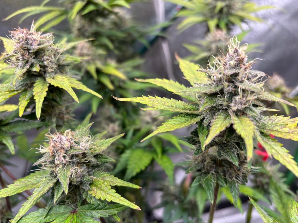 Das Lemon hab ich schon mal durch die Berührung wargenommen, wundervolles Aroma! Entlaubung, Hydration und LST haben hier sehr harmonisch funktioniert. HESI ca. 80% Düngung. NL geht leicht zurück. Ansonsten keine Vorkomnisse, ich gehe von 2 Wochen, vielleicht etwas mehr aus. Trichomcheck in den nächsten 2-3 Tagen, mit Foto falls ichs hinbekomme (werde mir etwas basteln)