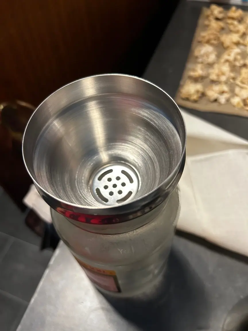 Nach ca einer Stunde kann das grobe Zeug aus dem Öl mithilfe eines küchensiebes.