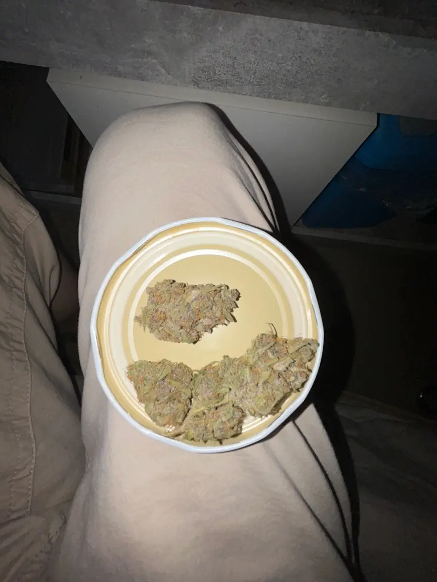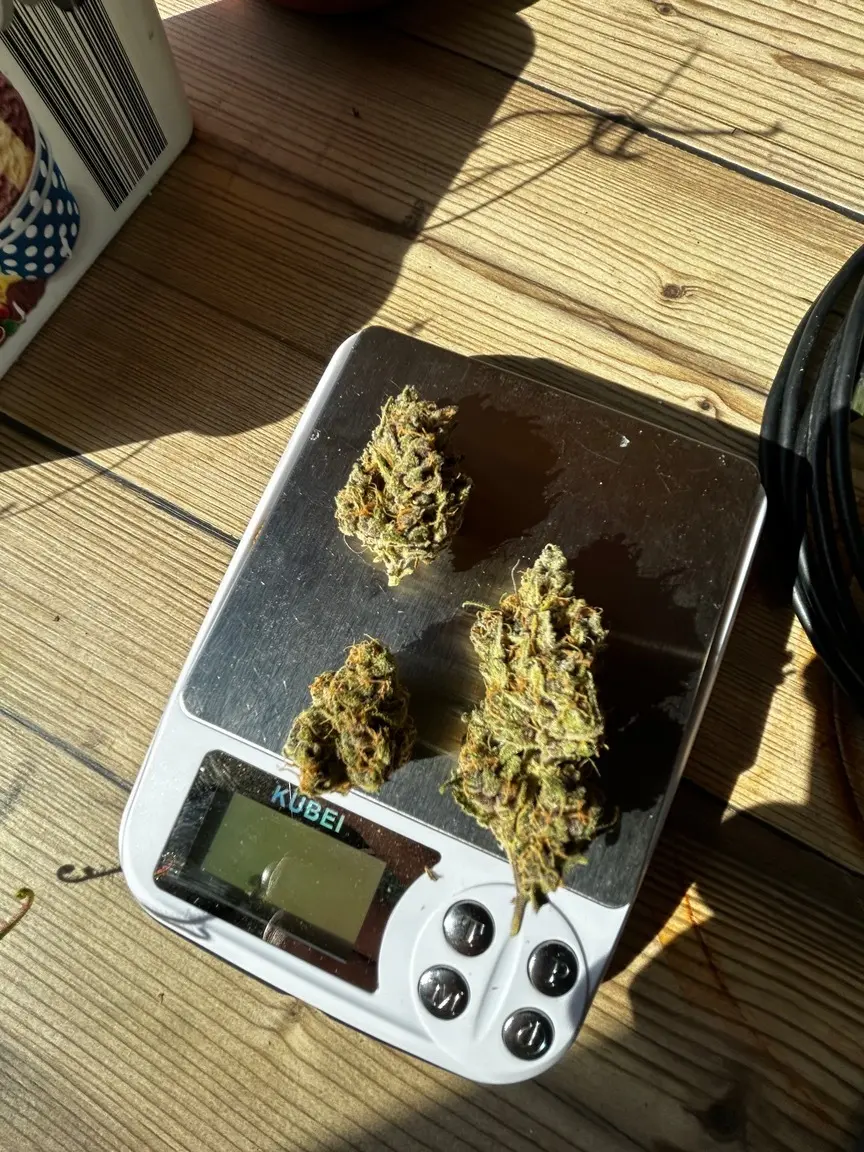 Zum Ergebnis bleibt zu sagen: extrem viel lila Blüten, Blätter sind grün geblieben. Überall ist Harz, es riecht einfach nur genial (etwas skunk, etwas seeehr viel skunk scheinbar… und ein wenig fruchtig mit ganz wenig citrus) und die Wirkung ist echt gut. 😂 da hat der testbud (0,4g) gereicht um mir die Lust am diskutieren zu nehmen und mich in die Couch zu drücken 😅 eventuell liegt das aber auch mit am Dronabinol.