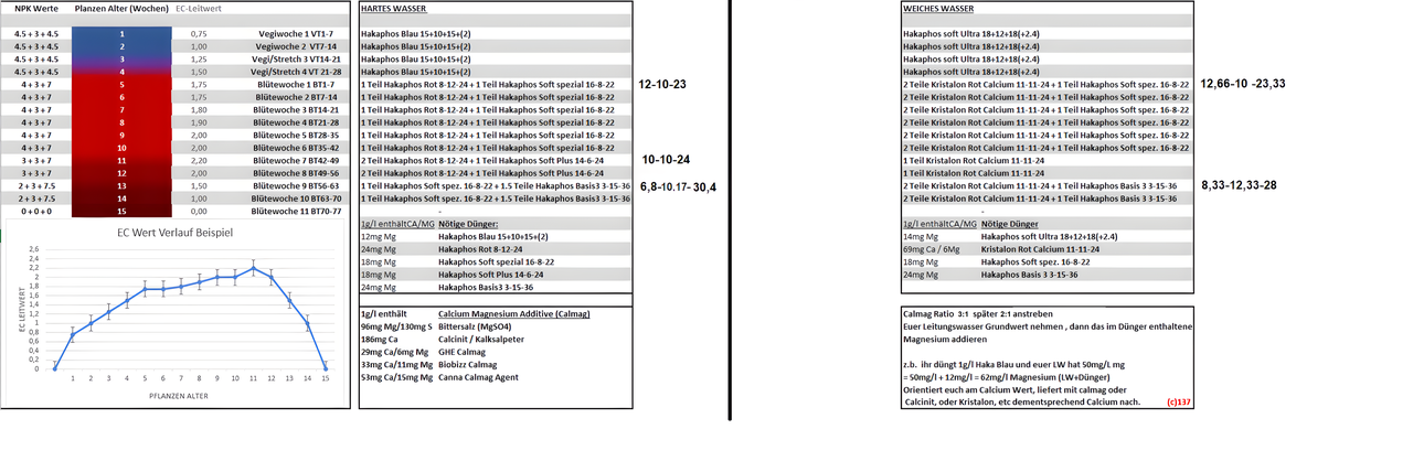 Dieses Schema habe ich auch für meinen ersten Grow verwendet und in Verbindung mit Dolomitpulver hat es auch mit weichen Wasser (Tipp von Karler) gut funktioniert :)