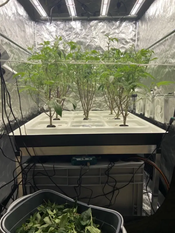 In der Zwischenzeit habe ich dann aber mit meinem kleinen 40x40 Vegi Zelt herumexperimentiert, weil ich wissen wollte, ob Hydro auch leise/nahezu lautlos geht. Hatte mir einen Fluttisch gebastelt, der einmal pro Stunde geflutet wird. Das ohne Medium - Also sozusagen Low Pressure Aeroponic, aber ohne dass es die ganze Zeit plätschert. Das hatte irgendwie auch funktioniert, bis auf das mir der PH Wert immer nach ca. 10 Tagen abgeschmiert ist (Haka Blau).