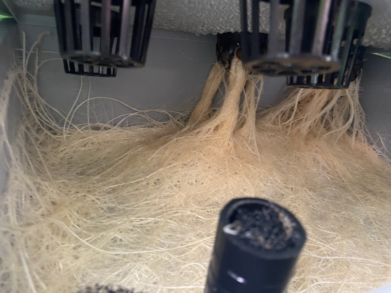 Bewurzelungshormone habe ich keine verwendet, da ich das ganze erstmal möglichst einfach halten will und im Vegi Zelt viel Zeit habe. Das letzte mal hatte ich einfach Leitungswasser genutzt, da ich gelesen hatte, dass die Wurzelbildung durch die Suche nach Nährstoffen schneller geht - Kling ja auch plausibel.