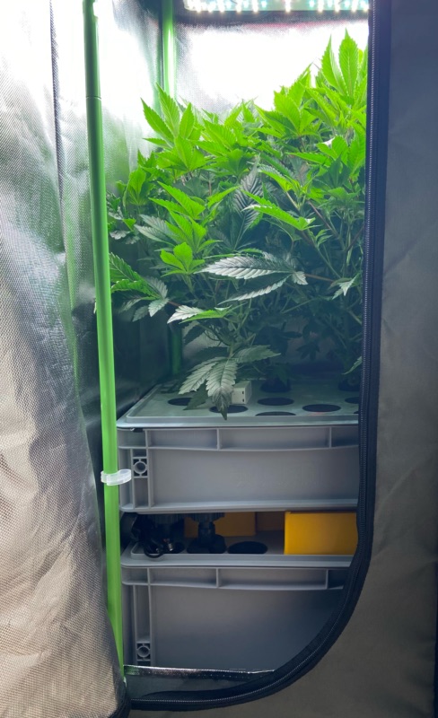 Heute mal ein Blick in mein kleines Multifunktionszelt. Wie im Blütezelt, wird der Growtisch einmal die Stunde für 15 Minuten geflutet. Bis gestern befanden sich darin zwei temporäre Muttis:
