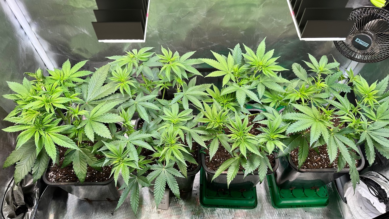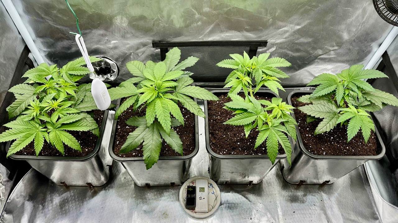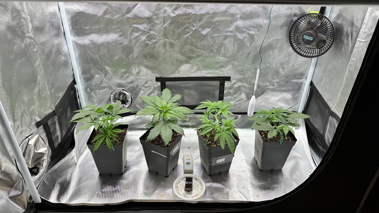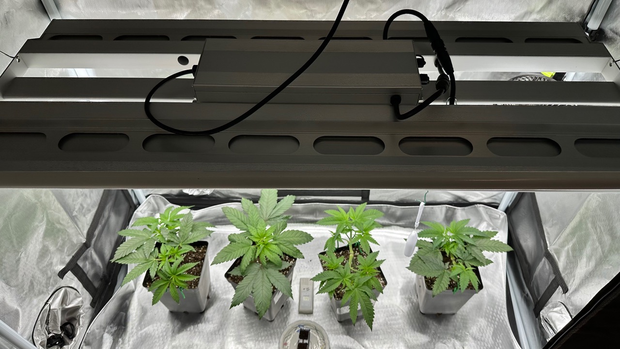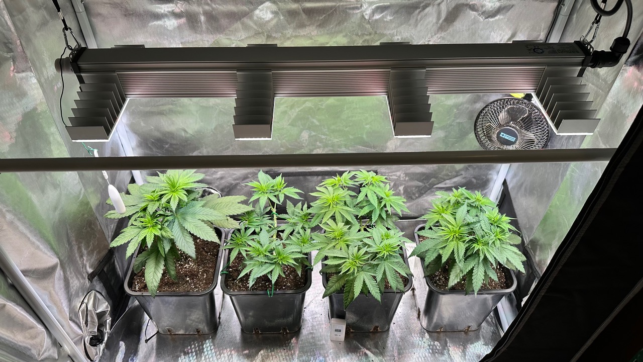 Setup ist 120x60x180 Zelt was mit einer GC-Veg auf 50% bei knapp 110W läuft, Abluft zieht übers Hauptzelt.