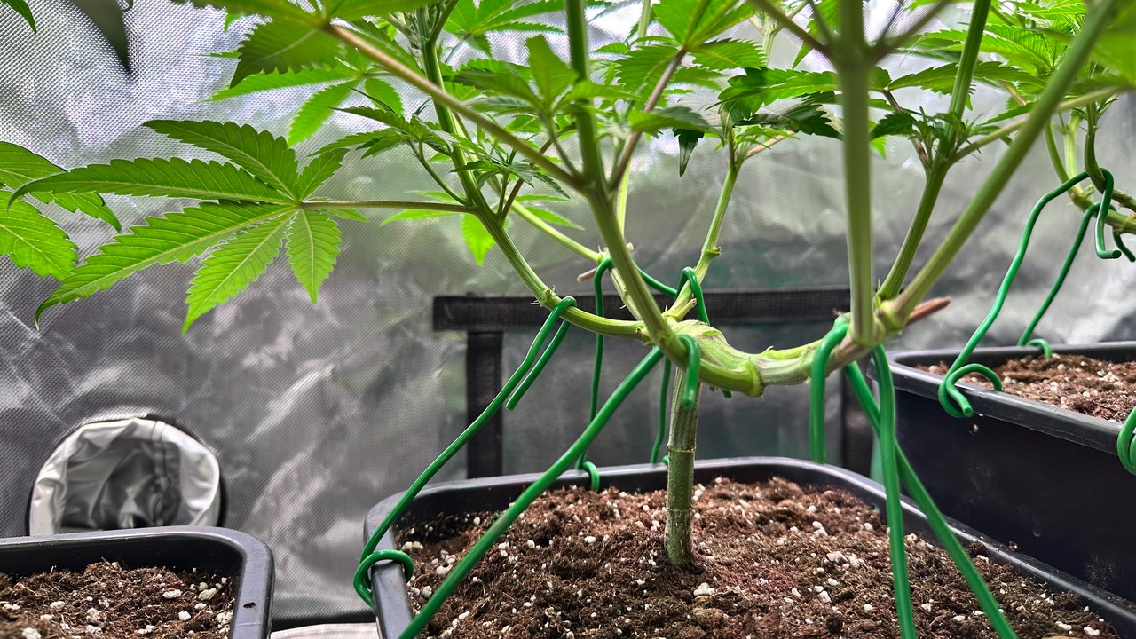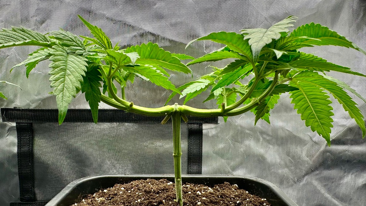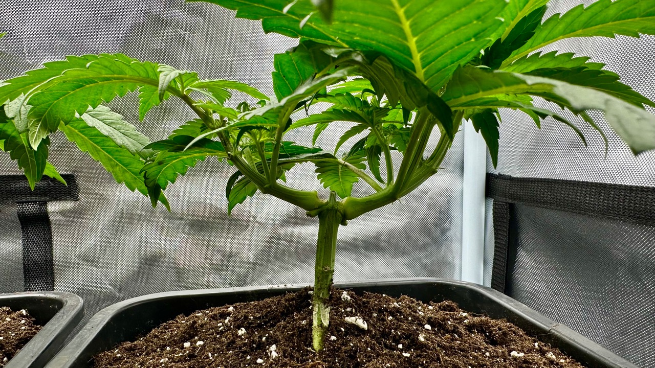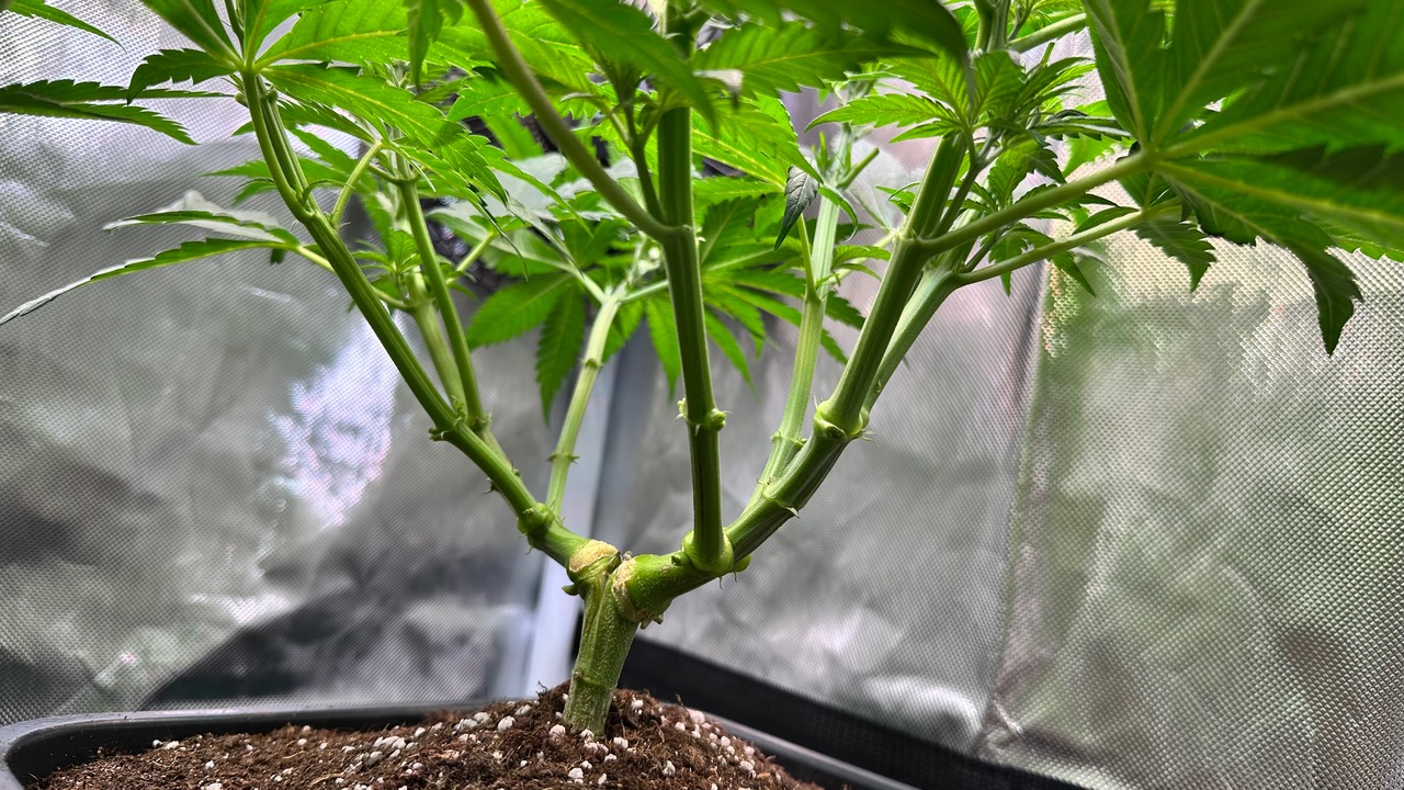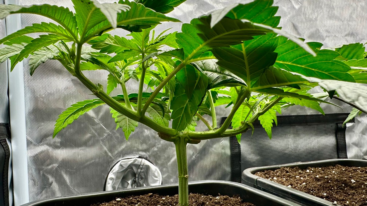 Setup ist 120x60x180 Zelt was mit einer GC-Veg auf 50% bei knapp 110W läuft, Abluft zieht übers Hauptzelt.