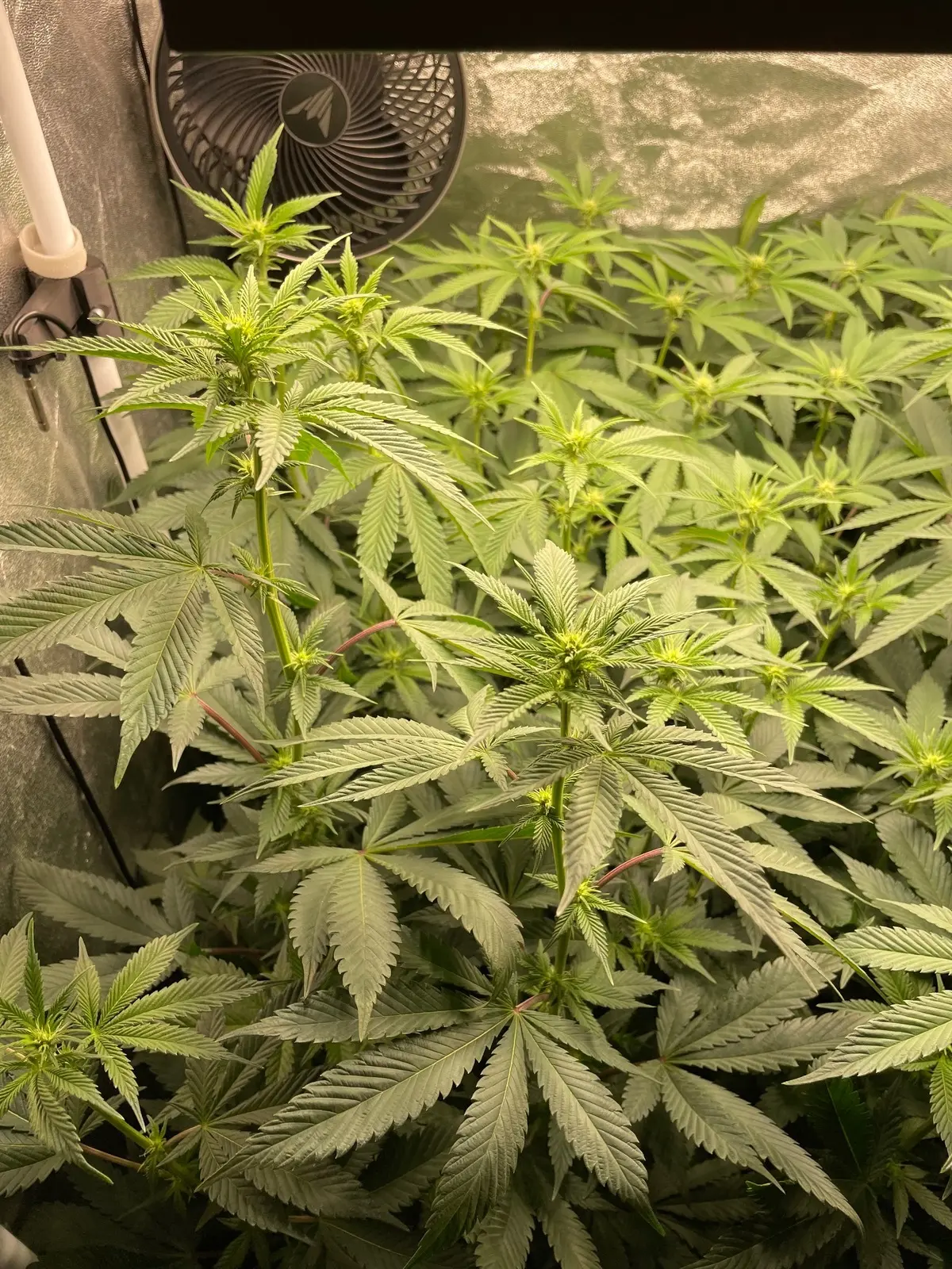 Sorry ist alles ein bissen untergegangen momentan echt viel um die ohren. Muss sagen muss wohl morgen das große Zelt aufstellen weil die immer weiter nach oben wollen und bald kein Platz mehr ist in den Zelt. Sind natürlich auch ein Stück Höhe gekommen durch die drain Master. Würde morgen nochmal ein paar Bilder hochladen von der Vorblüte, hab jetzt grade leider nur das eine Bild.