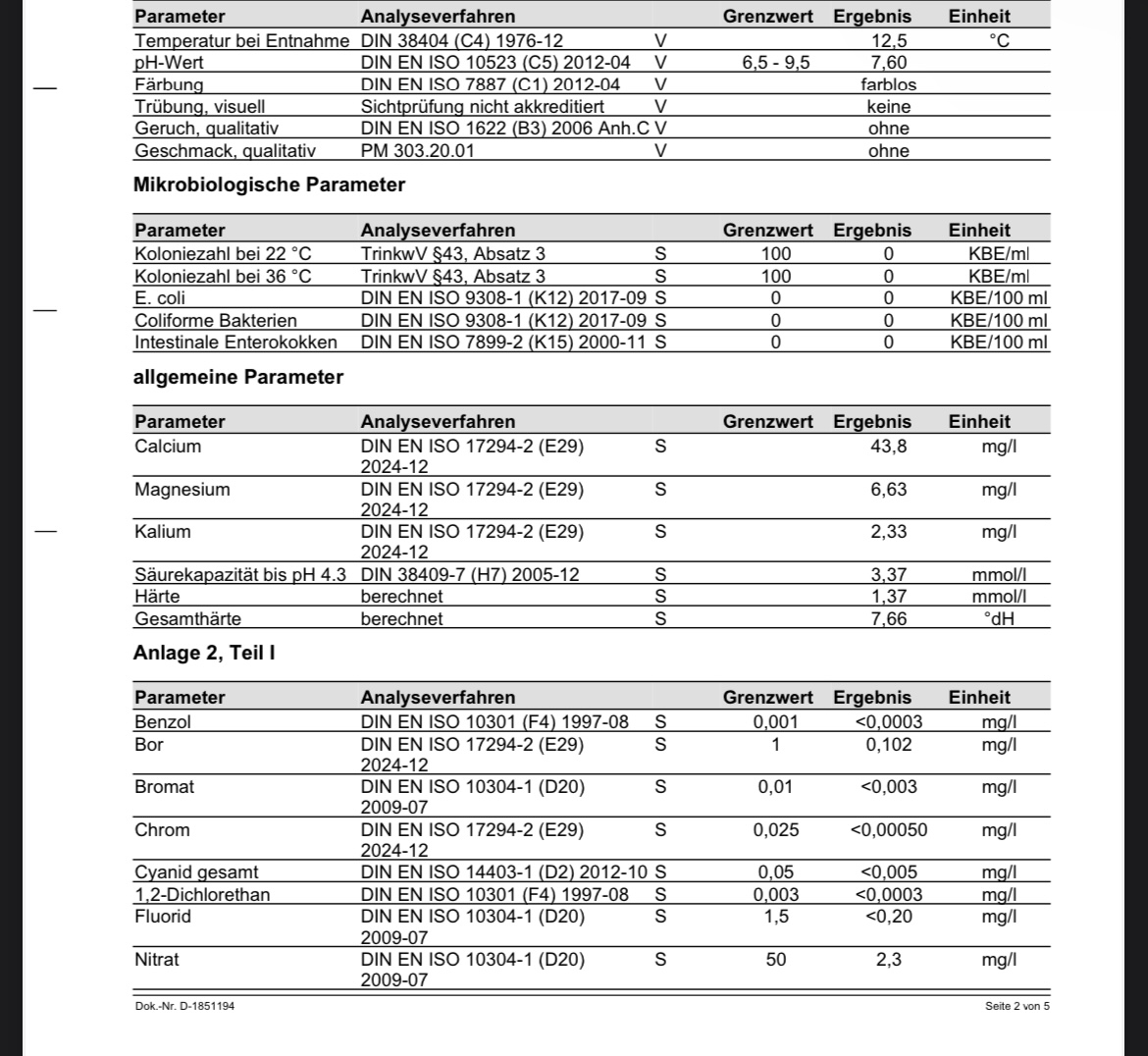 Email zur Gemeinde schicken, die senden einem dann die letzten Wasseranalysenberichte zurück 💪