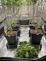 Muss zugeben war nicht mein Plan das die so in die Länge gehen ist mittlerweile mein 6 durchlaufen, und hatte noch nie solche Genetiken die so ein krassen Stretch. Die Pflanze sind nach Licht Umstellung ca. 40-50cm noch gewachsen wenn nicht sogar noch mehr 😅 aber Mann muss eben versuchen das Beste draus zu machen leider bekomm ich die pflanzen nicht wirklich auseinander da die unten doch schon verholzen und strog Netz hab ich leider für das Zelt nicht.