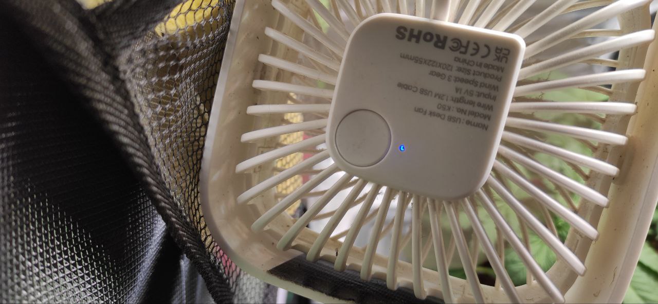 ein Gedanke zur schlechten Entwicklung. Im Zelt ist ein USB Ventilator der immer auf Stufe 1 (trotzdem gut zu hören), den man unter anderem auf dem Bild vom Freitag gut erkennt (weiß,oben links). Der Ventilator/Lüfter lief im Dauerbetrieb, so dass auf der Rückseite befindliche Blaue LED licht dezent in die ecke nach oben geleuchtet hat. Hm 🤔 - Könnte es sein das es die Pflanze ebenfalls beeinträchtigt hat? oder ist das bezogen auf dei optischen Erscheinungen eher unwahrscheinlich?