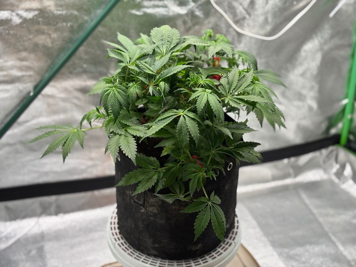 Tja, ich würde sagen jetzt kanns dann demnächst mal in die Blüte gehen! Morgen werd ich ein Sack Erde kaufen und dann kommt sie die Tage in den 18L Stofftopf unter 12/12, sobald die Tropicana Poison raus ist.