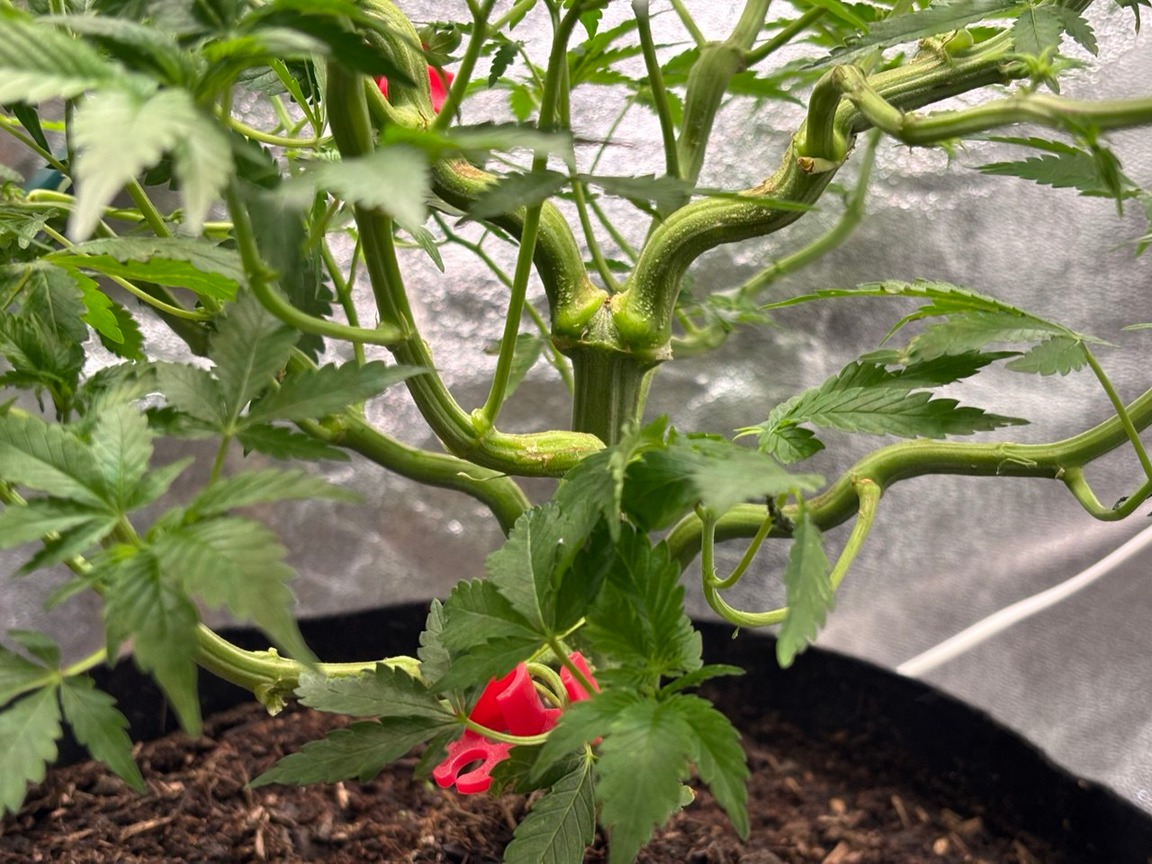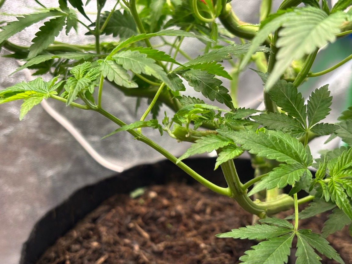 Das beschädigte Blattwerk hatte ich zuletzt komplett entfernt. Habe mir auch angewöhnt bei Ihr ab und an zu sprühen, dass hat ihr wohl gut getan. Im moment gibts nur Wasser. Die Pfanzenbieger waren für mich ein kleiner Gamechanger muss man schon sagen, bin gespannt wie sie aussieht wenns rüber geht ins Blützelt! Das wird bestimmt ne ordentlich große Pflanze, bekommt ja auch den 18L Stofftopf.