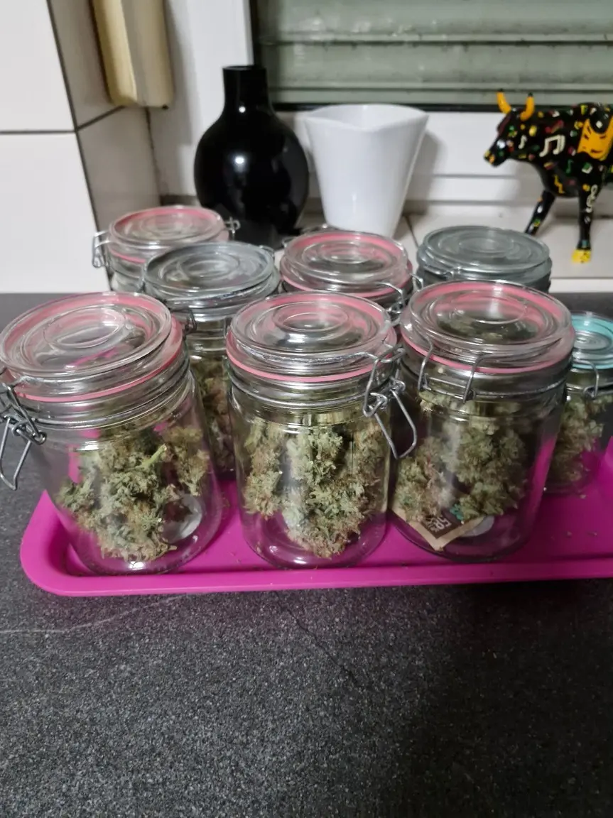 Als letztes habe ich ja die RQS Epsilon F1 Auto mit einem richtig guten Ergebnis angebaut. Das Weed, mittlerweile 2 Wochen+ gecured, ist total lecker und die Wirkung ist sehr stark. Da ich gerne ernte, wenn alle Trichome milchig und max 5% bis 10% Bernstein Farben haben, ist der Turn zunächst sehr trippy/psychedelisch und haut einen erst etwas später in die Couch. Es waren alles in allem um die 200g trocken und 10g Bubble Hash, davon aber nur ca 1.5g beste Qualität.