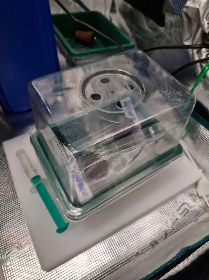 Nach ca. 1,5 Wochen der Vegi wurde die Pflanze getoppt und seitdem regelmäßig entlaufen, damit ich mir nix an Schimmel einfange.