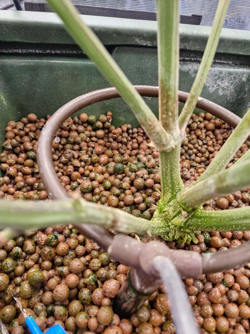 Vorgezogen wurde die Gorilla in vorbehandelter Steinwolle ( 24h in 5.0 ph LW bis stabil) und direkt nach 3 oder 4 Tagen in die Farm eingesetzt. Wie immer war das Wachstum die ersten paar Tage so gut wie in Stillstand, erst als die ersten Wurzeln sich etwas ausgebreitet hatten ging es los Dann aber richtig und als die Wurzeln den Tank erreicht haben, hat die Pflanze den Turbo gezündet. Man konnte quasi live beim Wachsen zusehen, unfassbar wie extrem der Boost bei Hydro Systemen ist, wenn es einmal startet