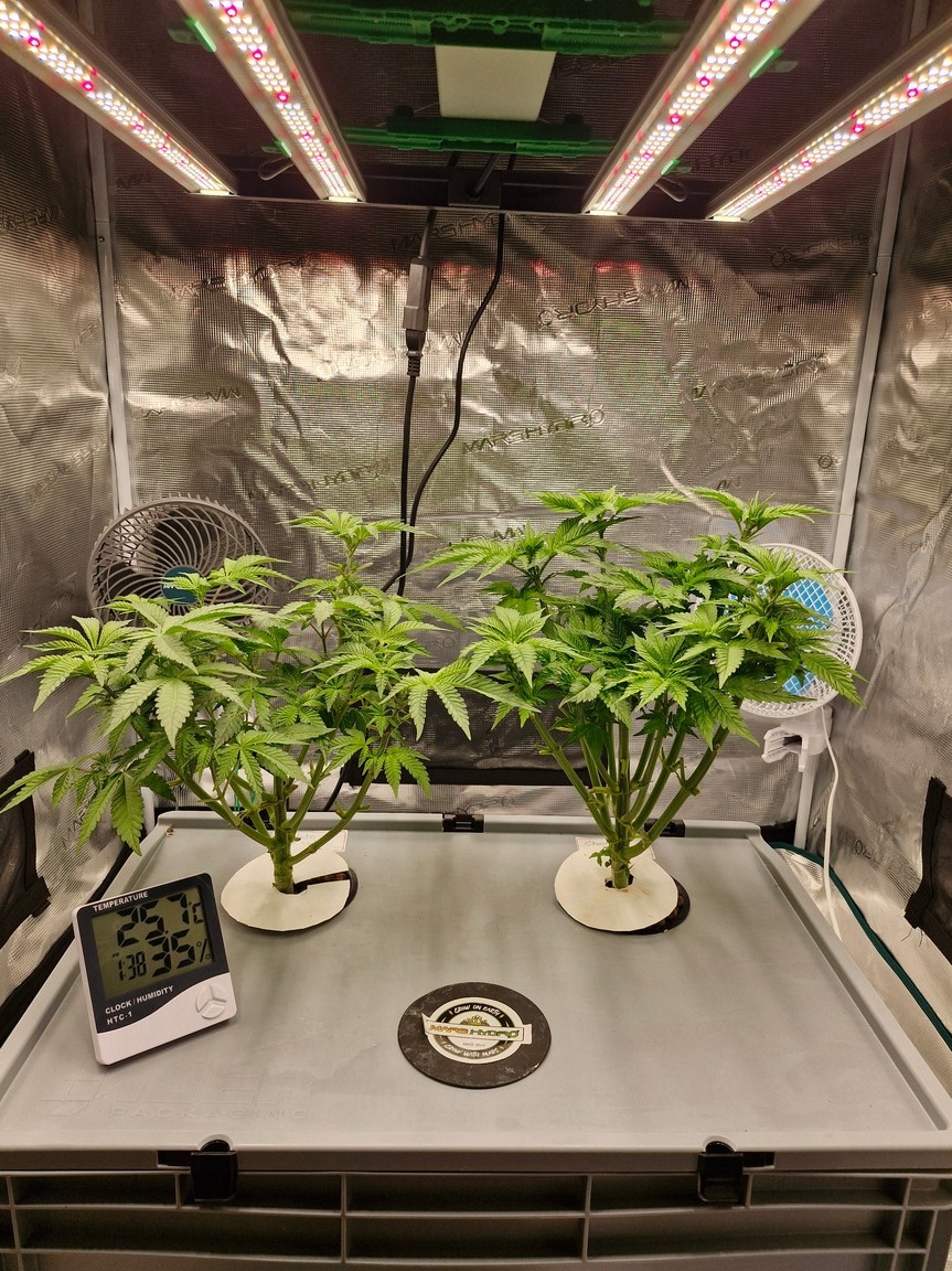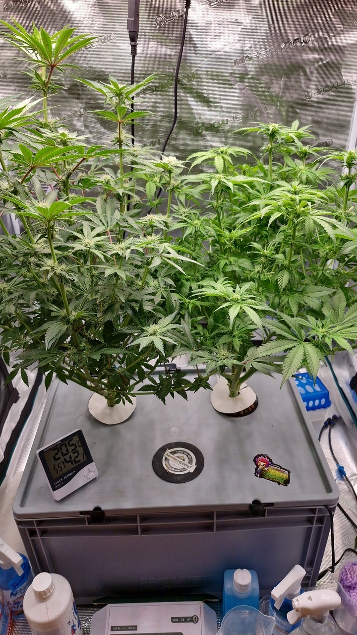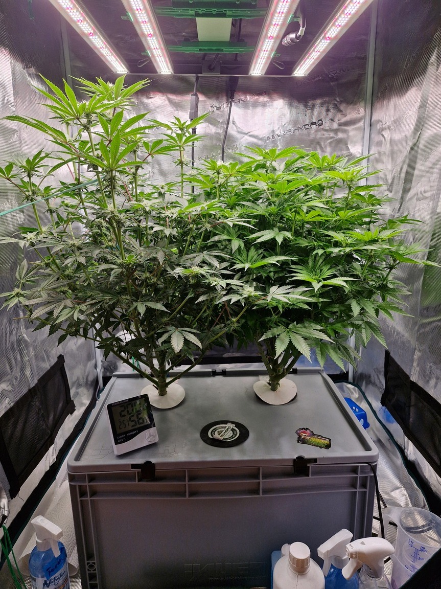 Etwas spÀter als sonst, aber es gab nicht viel zu berichten. Die Pflanzen lassen sich beide gute Zeit finde ich, 30 Tage nach dem Switch habe ich schon etwas mehr erwartet. Aber ich will nicht meckern, bis jetzt ist das ein absolut problemloser grow.