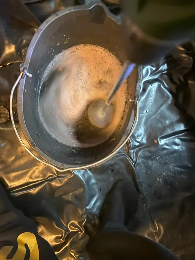 So wie oben beschrieben Material ins Wasser und gibt im 10 min- 20 min mit Akkuschrauber achte auf die Wasser Temperatur!
