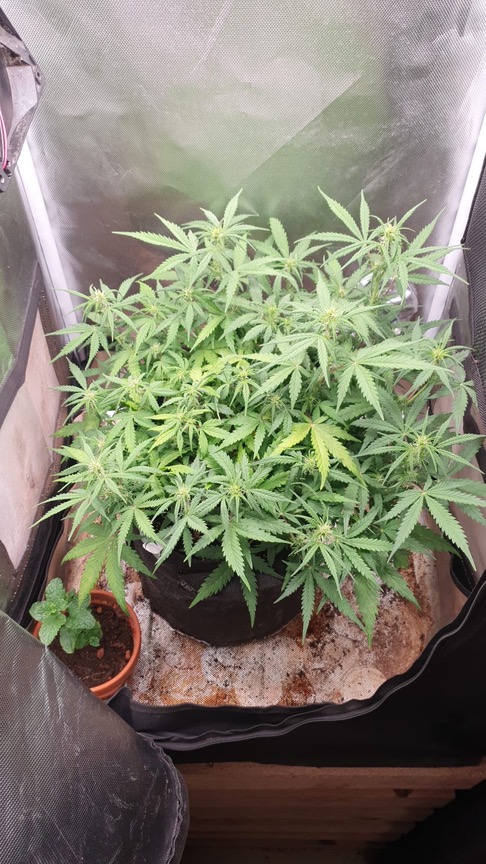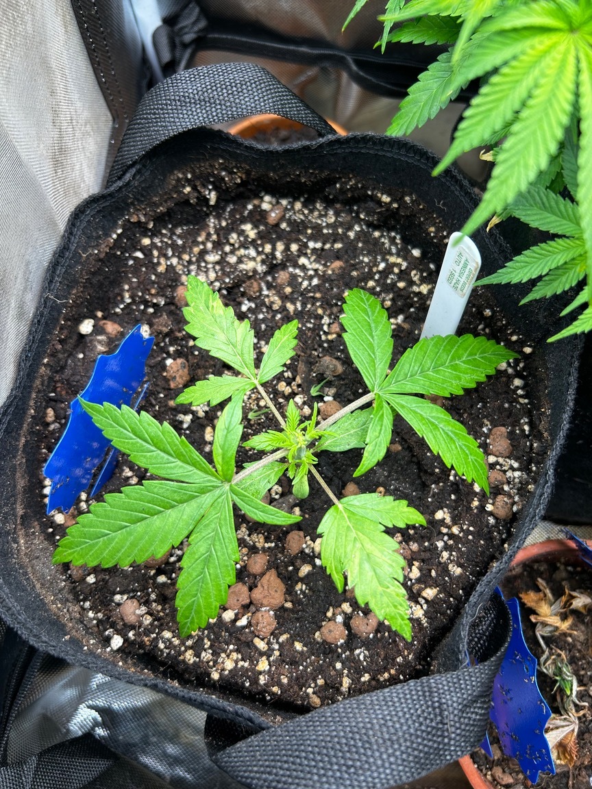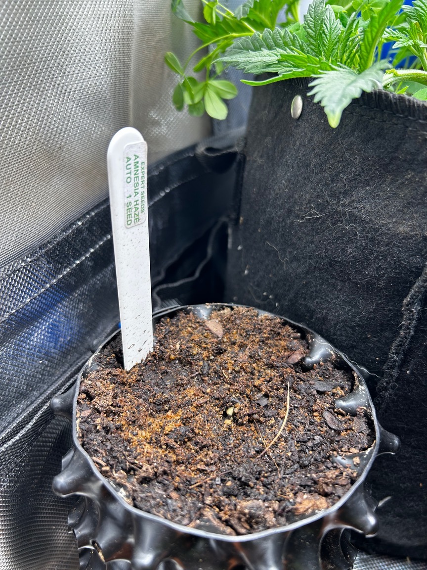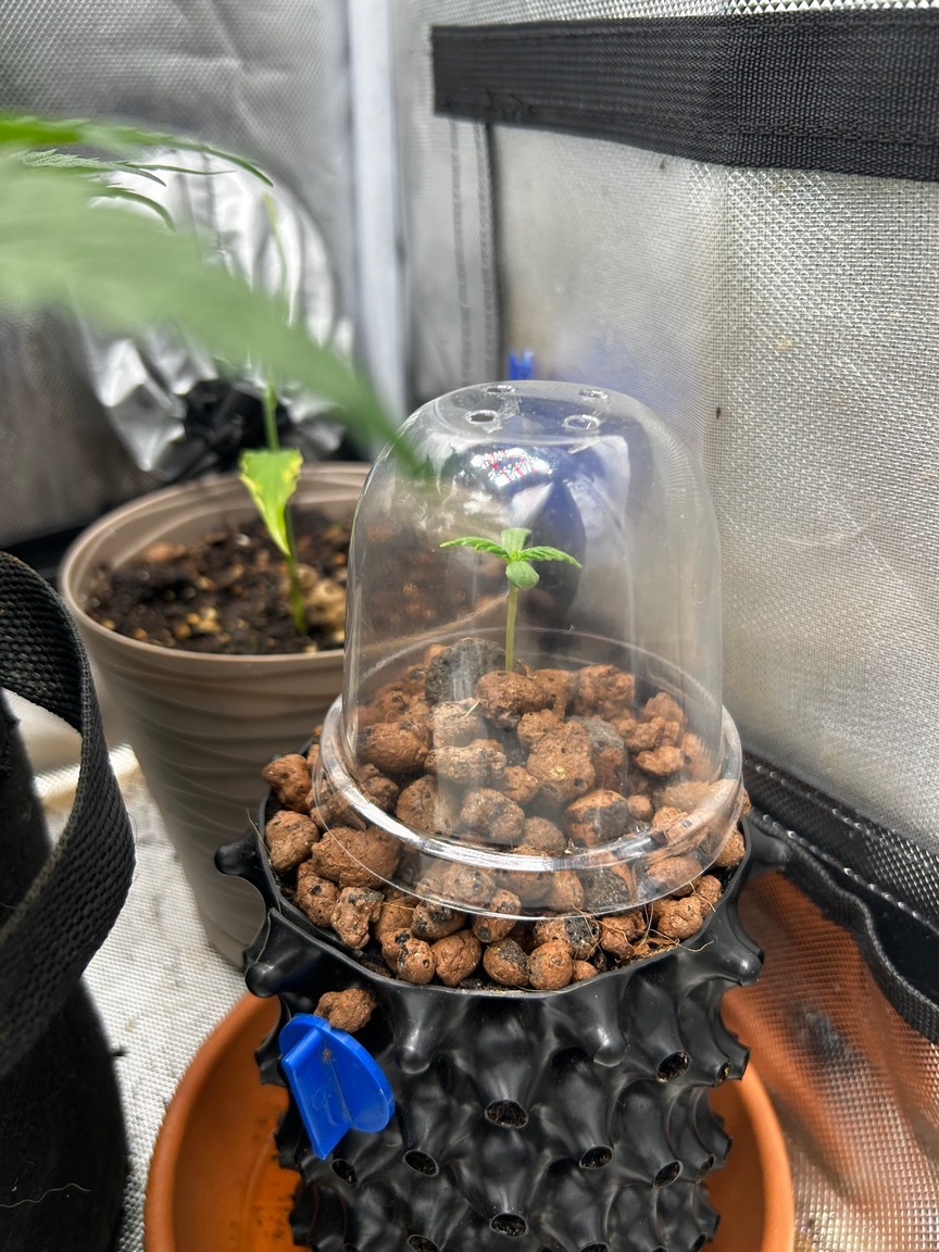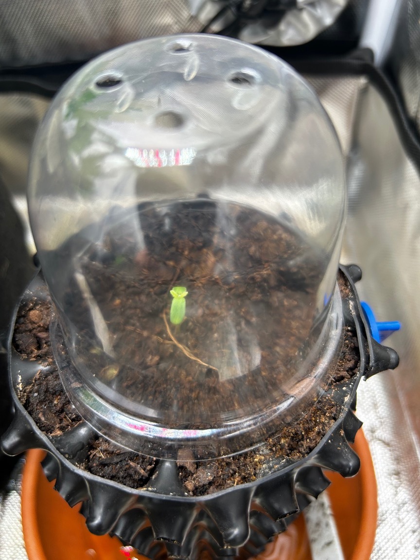 Plan: 1L-Airroottopf zum anzüchten in Cocos (🙈 ich **** hab natürlich Anzuchterde genommen, werde das auch so lassen da der Kopf schon rausguckt), anschließend gehts in 50/50 Cocos/Blähton in einem gekürztem Autopot Smartpot weiter. Als Automatik bleibt sie dann im 50x50 Brüter unter der SF1000 bei einem 18/6 Zyklus und sollte via toppen und trainieren auf unter 60cm kommen.