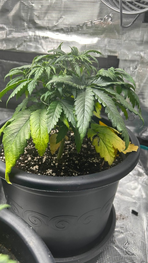 Hallo, ich habe Vorgedüngte Erde von BioBizz (oben Lightmix ca. 5cm, unten Allmix), die Pflanzen sind 27 Tage alt seit sie aus der Erde sind. Meine Töpfe haben 13 L Fassung und sind mit ungefähr 11l gefüllt. Mein Problem ist das ich nicht weiß ob es ein normaler Stickstoffmangel ist was ich mir eigentlich nicht vorstellen kann, da wie oben erwähnt Allmix drinne ist. Kann es sein das die Pflanze unterwässert ist, und was seht ihr für weitere Mangel? Bin für jeden Tipp dankbar.