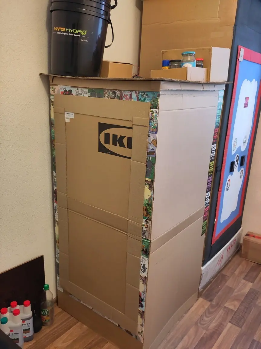 - z.B. für die Decke/das Dach den Karton MINDESTENS doppellagig kleben und die Wellrichtung der zwei Lagen 90° versetzt anordnen (doppellagig wird wegen dem Gewicht der Lampe durchhängen mit der Zeit, aber korrekt ausgeführt wird es stabil bleiben)