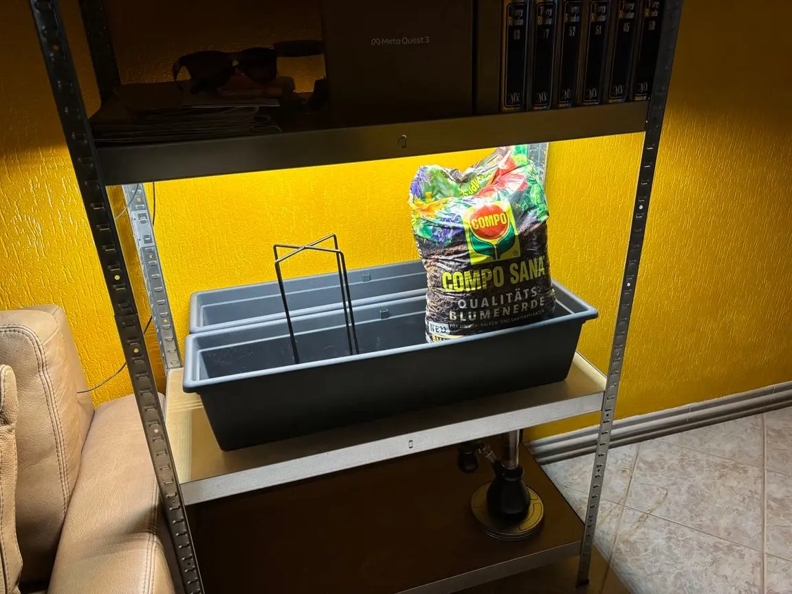 Ich hab vor unten im Behälter (ist noch eine Einlage versetzt 2cm fürs sickerwasser) etwas Kohle zu streuen, dann Composana mit etwas Perlite u. dann etwas Coco als Topping.....