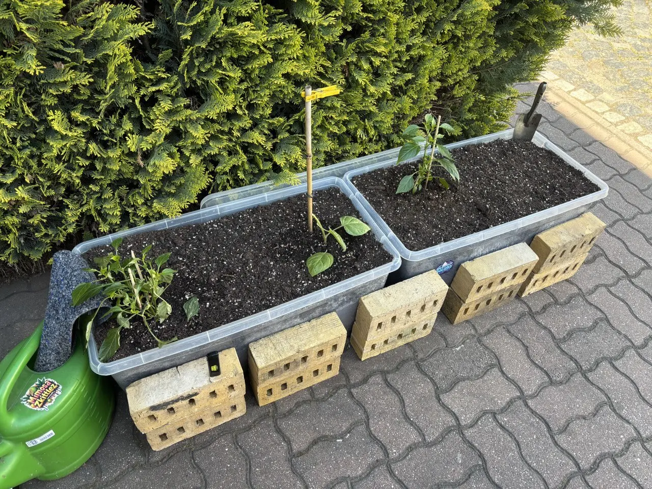 Snack Pepper, Physalis - daneben die Pepperoni mit den ganzen anderen Samen. ich hab da son Stück industrieteppichboden seitlich angebracht der geht bis auf den boden, den lass ich ggfs. wenn vorhanden im Wasser hängen. Meint Ihr das bringt etwas, dann würde ich die zwei Boxen mit nem kleinen Stück Teppich noch verbinden, ob das aber die "Feuchtigkeit" überträgt... die Fetzen lagen noch im Fahrradraum - Ich hatte mal was von "Docht" gelesen u. abgeleitet. Ich hole falls da gar nix geht noch 2 Tomatenpflänzchen...