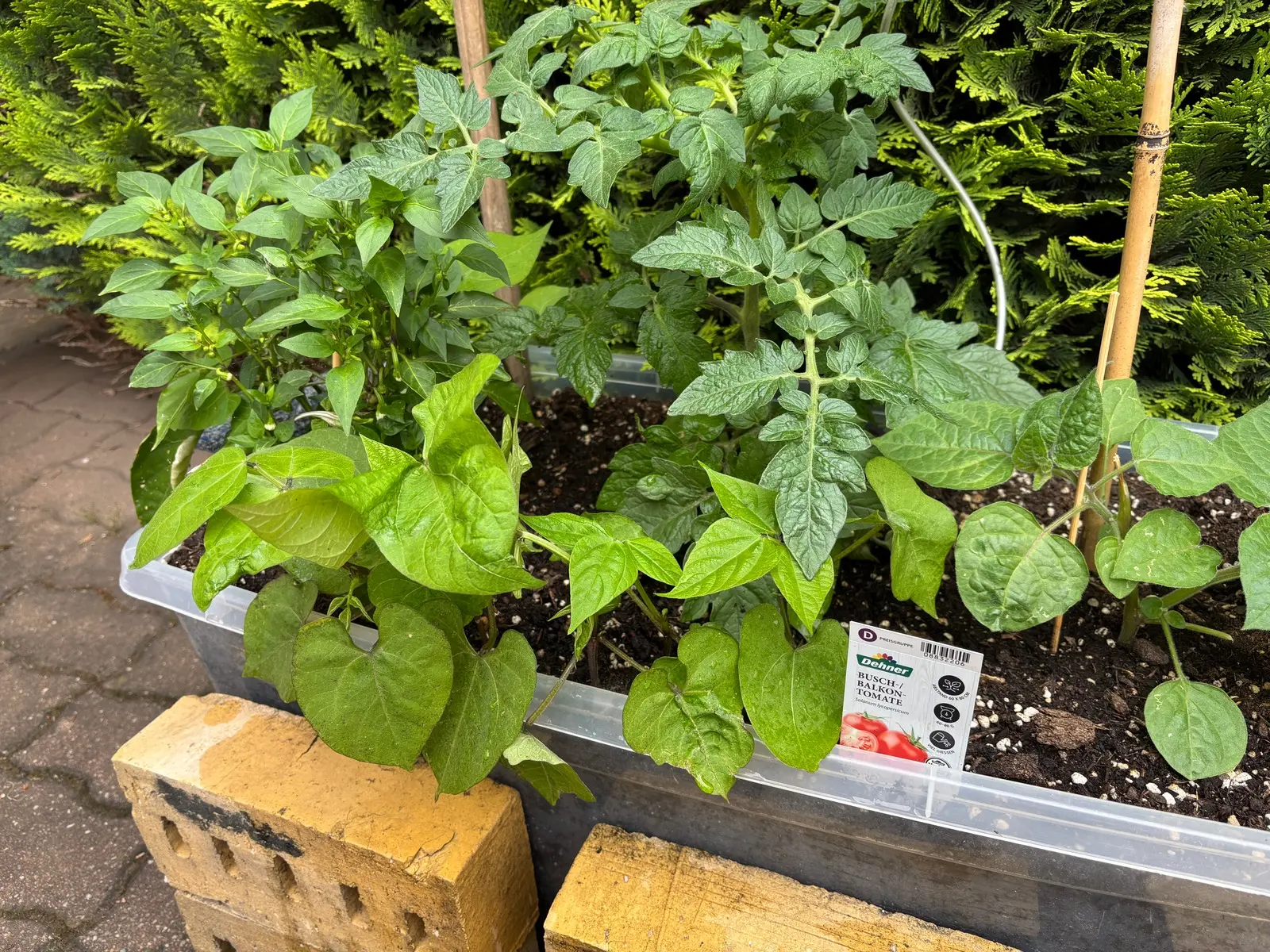 ach nicht wundern, die Physalis hab ich zur Hälfte gekillt als ich die versucht habe fest zu binden, ich Trottel. 😐