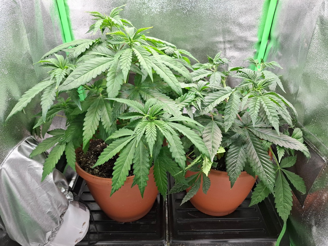 Plan ist ein mal umtopfen in den Endtopf in Plagron Light Mix, ein mal früh toppen (4. Internodium ab), dann trainieren und recht früh die Blüte einleiten, Ernte spätestens Mitte Mai.