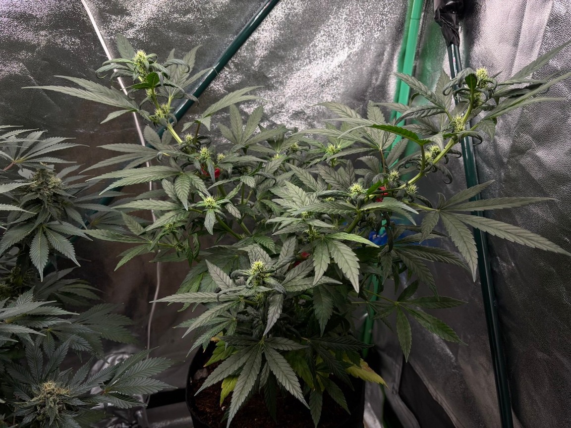 Ist bestimmt eine optisch schön und extravagante Pflanze wenn sie voll in der Blüte steht, wohl ein ganz spezieller Phenotyp. Hatte mir meine NL eigentlich etwas anders vorgestellt, aber bei der Vorgeschichte kann ich froh sein das sie jetzt so ausseiht u. ich denke von der Grundstruktur her kann ich dennoch mit gewissem Ertrag rechnen. Sie bekommt Hesi Blüh Complex u. jetzt dann auch Phosphor +. Gießintervall alle 48-72 Std. 2,5 - 3 Liter.