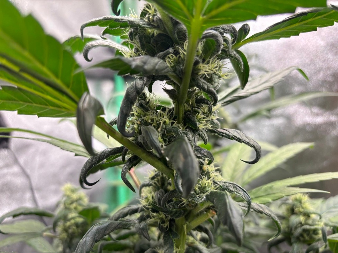 Die Blätter an den Blüten kreuseln sich... evtl. wars am Ende zuviel Stickstoff, ich hab die Pflanze nun auf die selbe Höhe wie die Gorilla Girl gestellt, also normal auf dem Boden, zumindest mal für einen Tag um überhitzung auszuschließen. Ich hab jedoch immer Angst das die Pflanzen dann spargeln.... HST/LST: kleine Triebe o. sonstiges gibts nicht die ich abschneiden könnte, ich nehme an am Schluss besteht die Pflanze aus 4 großen Kolben. =O