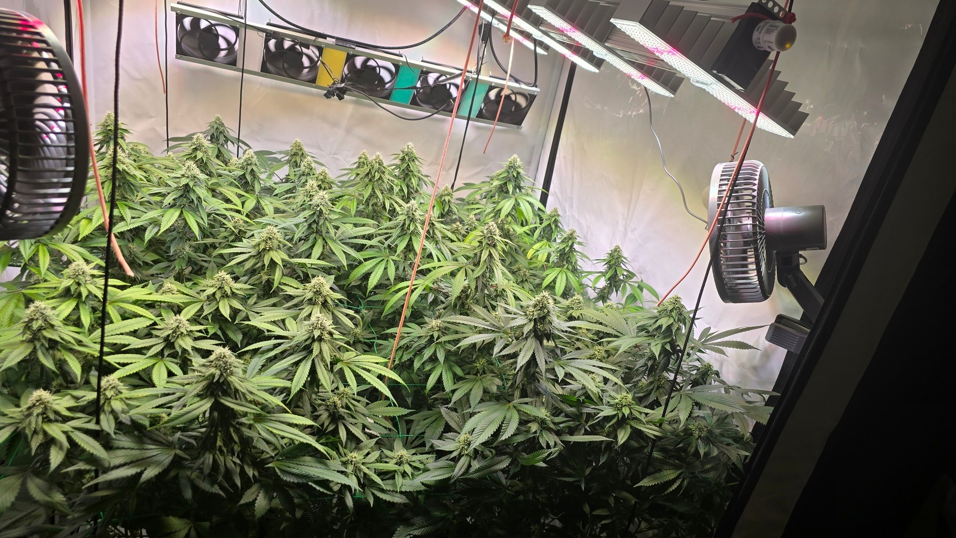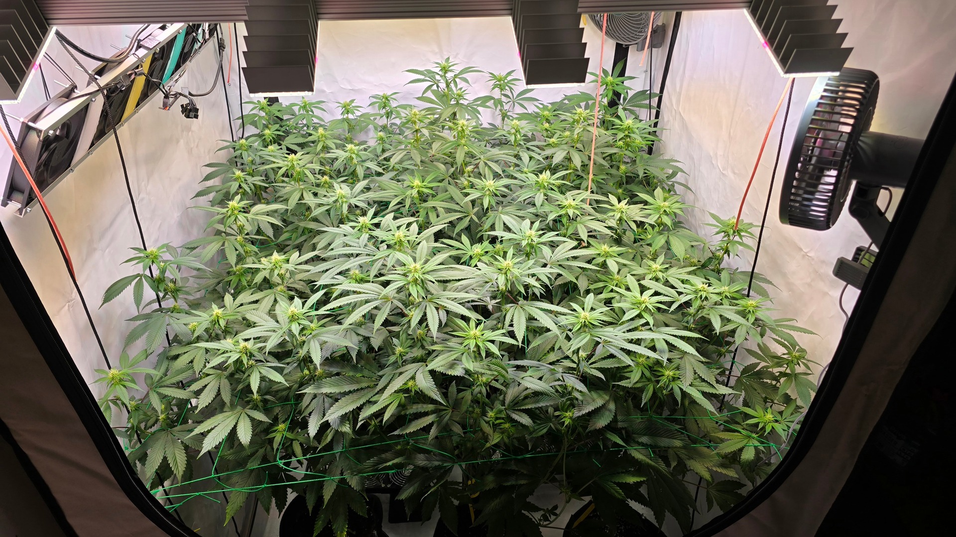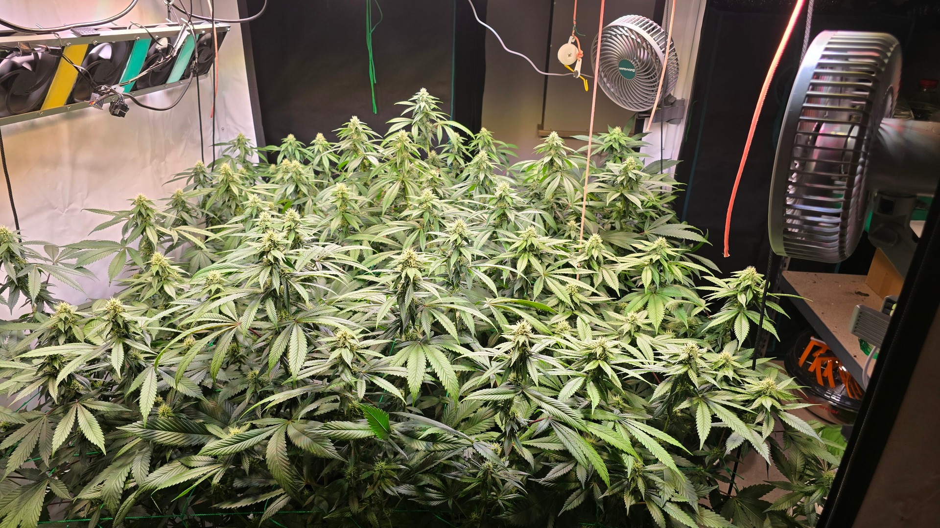 Ich habe 220 gramm geerntet. Und ein Mainbud der die hälfte eines glases ausgemacht hat also knapp 20-30 gramm war komplett weggeschimmelt wegen zuwenig airflow.