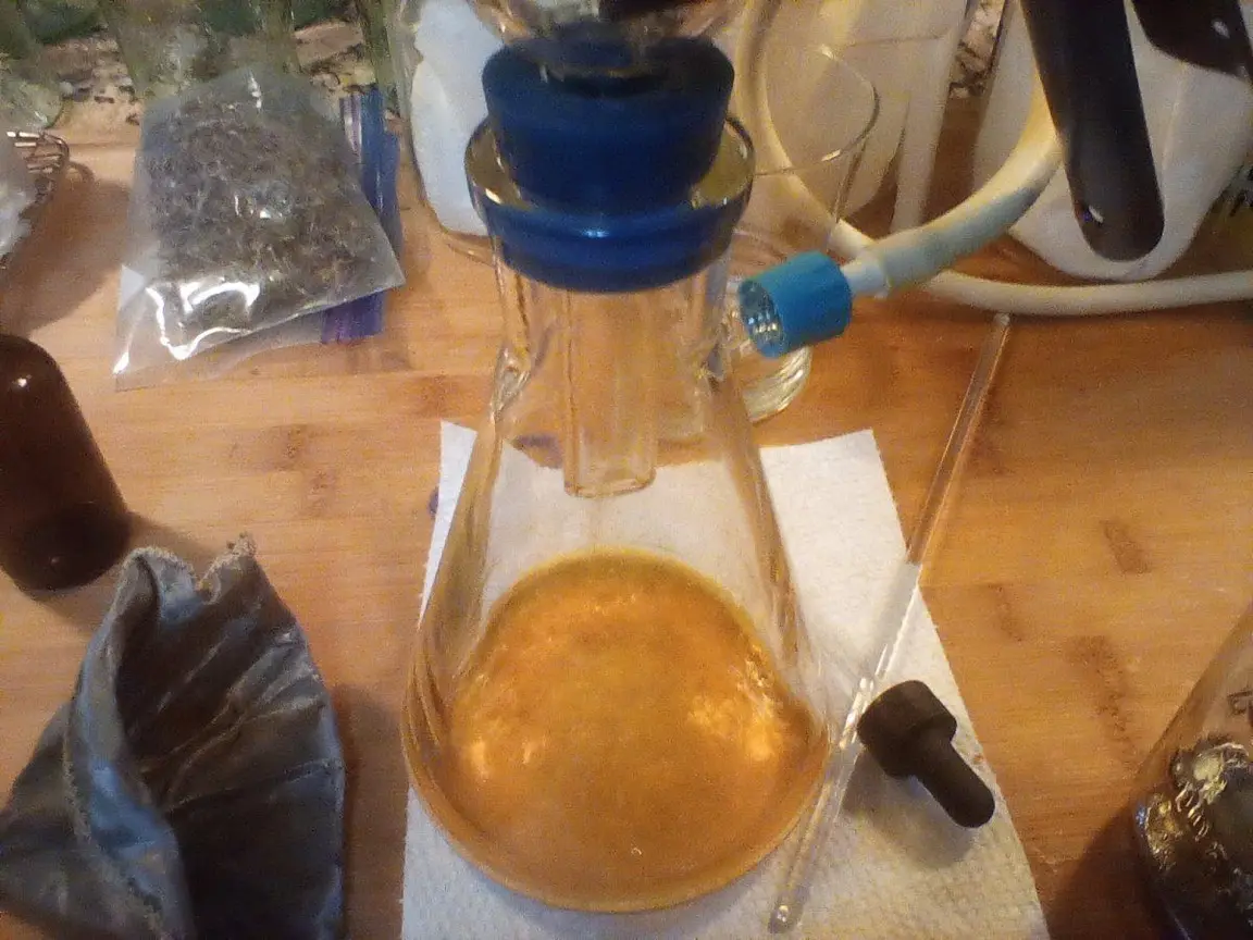 Um einen sauberen und reinen Extrakt zu erhalten, müssen Sie nun den Alkohol aus der Mischung entfernen. Hierfür gibt es je nach Budget verschiedene Methoden. Ideal ist ein Vakumofen oder alternativ eine Laborheizplatte und eine Vakuumhaube.