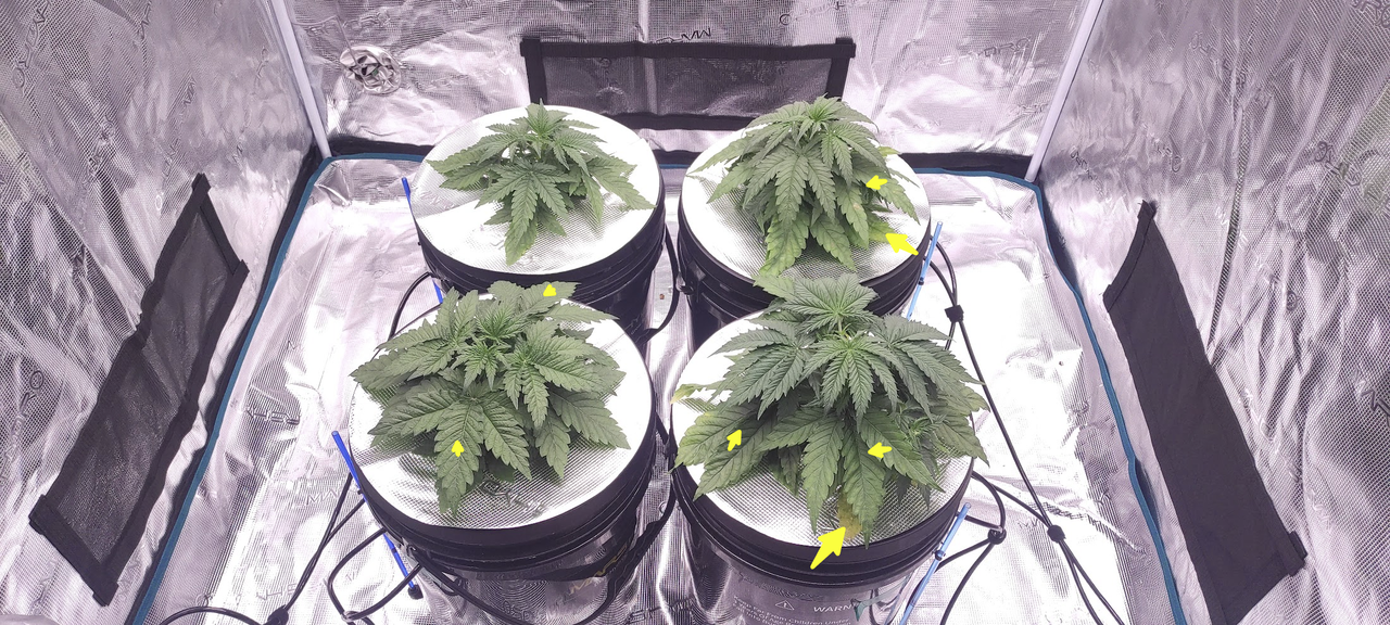 Kurze Frage, wann beginne ich damit die ältesten Blätter die jetzt bisschen verwelken zu entfernen und etwas zu entlauben? (unter anderem die markierten Stellen blockieren das Licht zu den Nebenästen).